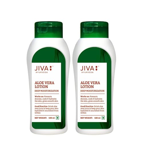 HomeBeautyFace CareMoisturizersAll Purpose Gels/CreamsJiva Aloe Vera Lotion 100ml | 100% Pure & Natural | Non-Sticky Fast Absorbing Formula Provides 24H Deep Moisturization, Prevents Dryness & Keeps Refreshed | Ideal For All Skin Types (Pack of 2)
