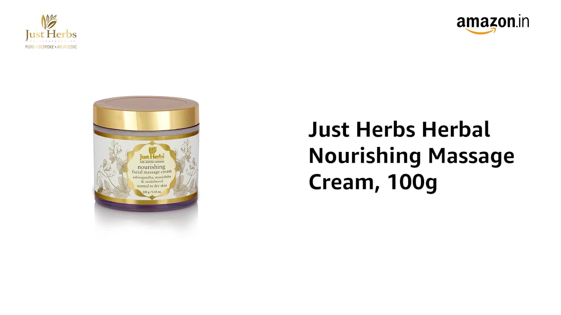 Just Herbs Ayurvedic Herbal Nourishing Face Moisturizing Massage Cream with Ashwagandha & Neem for Men & Women | Face Cream for Winters Dull & Dry Skin- 100 gm