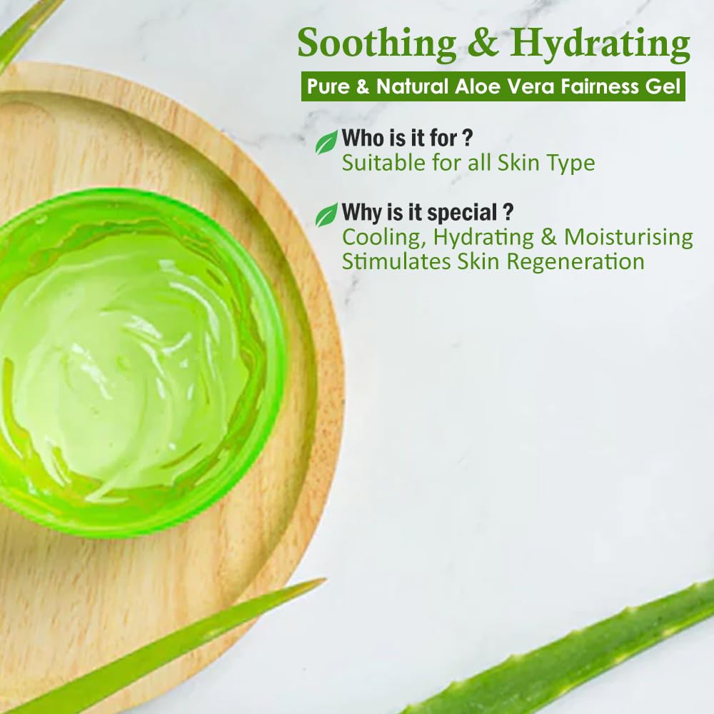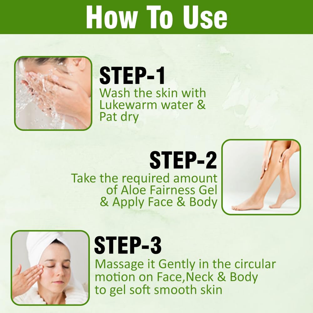 The antioxidant properties of this unique aloevera fairness gel soothes the rough and dry patches of the skin brightens dull skin and leaves your skin smoother and more radiant with a natural shine.