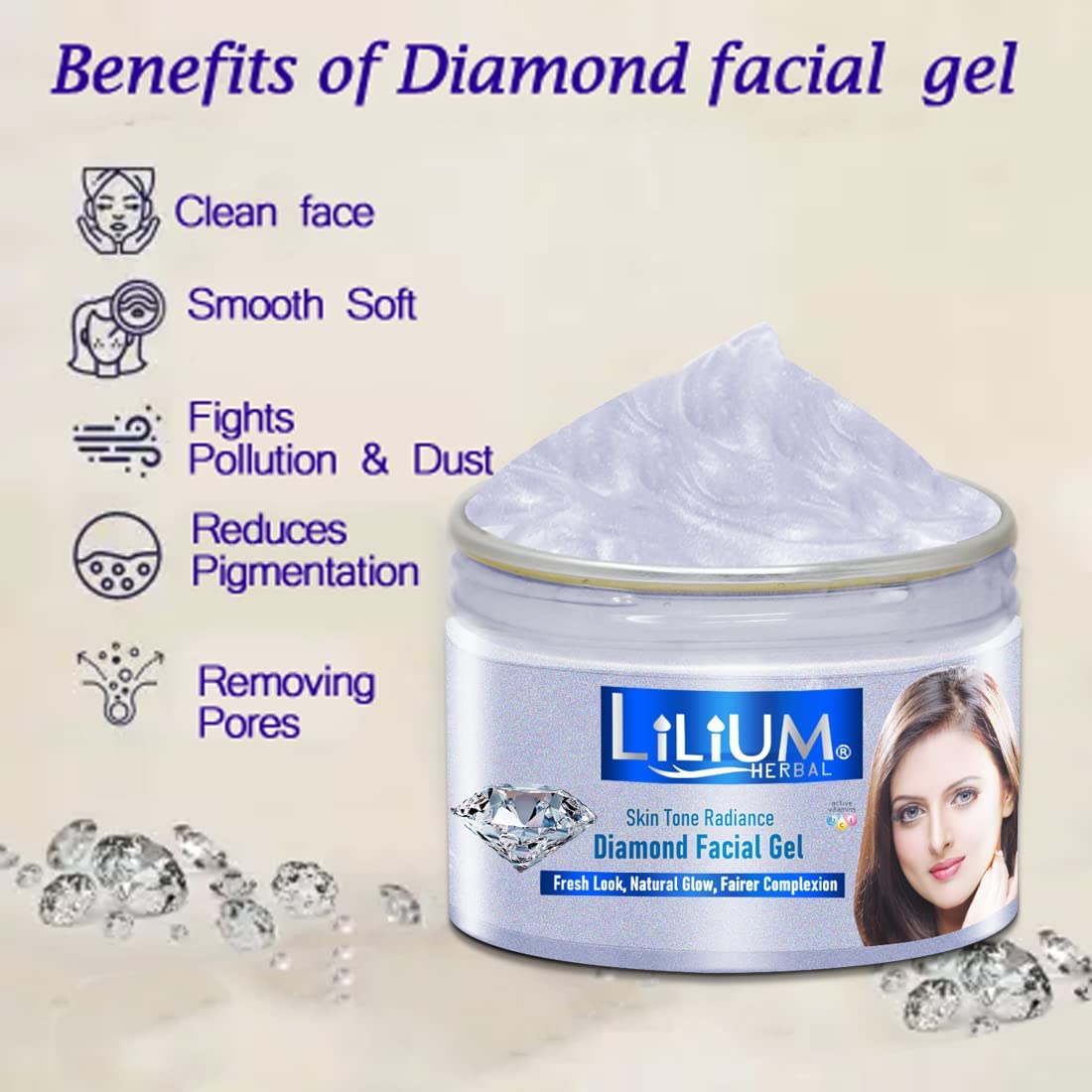 Good Choice India Provides you 100% genuine & brand new product. Lilium Herbal Diamond Facial Gel is good treatment for skin which help in exfoliate to your skin with removing pore-clogging residue that can lead acne inflammation and other skin problem infused with extra-fine diamond powder and with multi vitamins this facial gel will gently remove dead and dry cells and impurities from the top of your skin revealing smooth soft and luminous skin underneath.