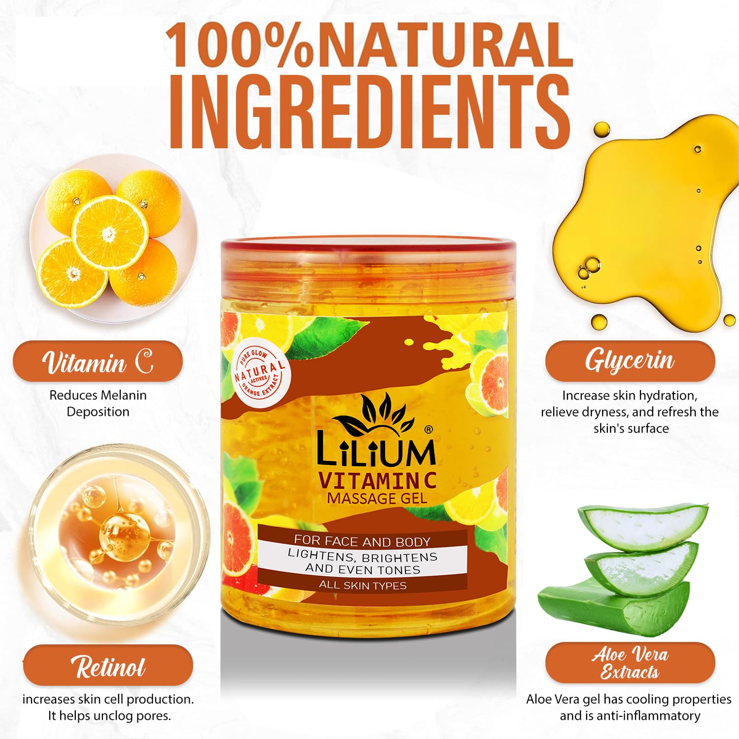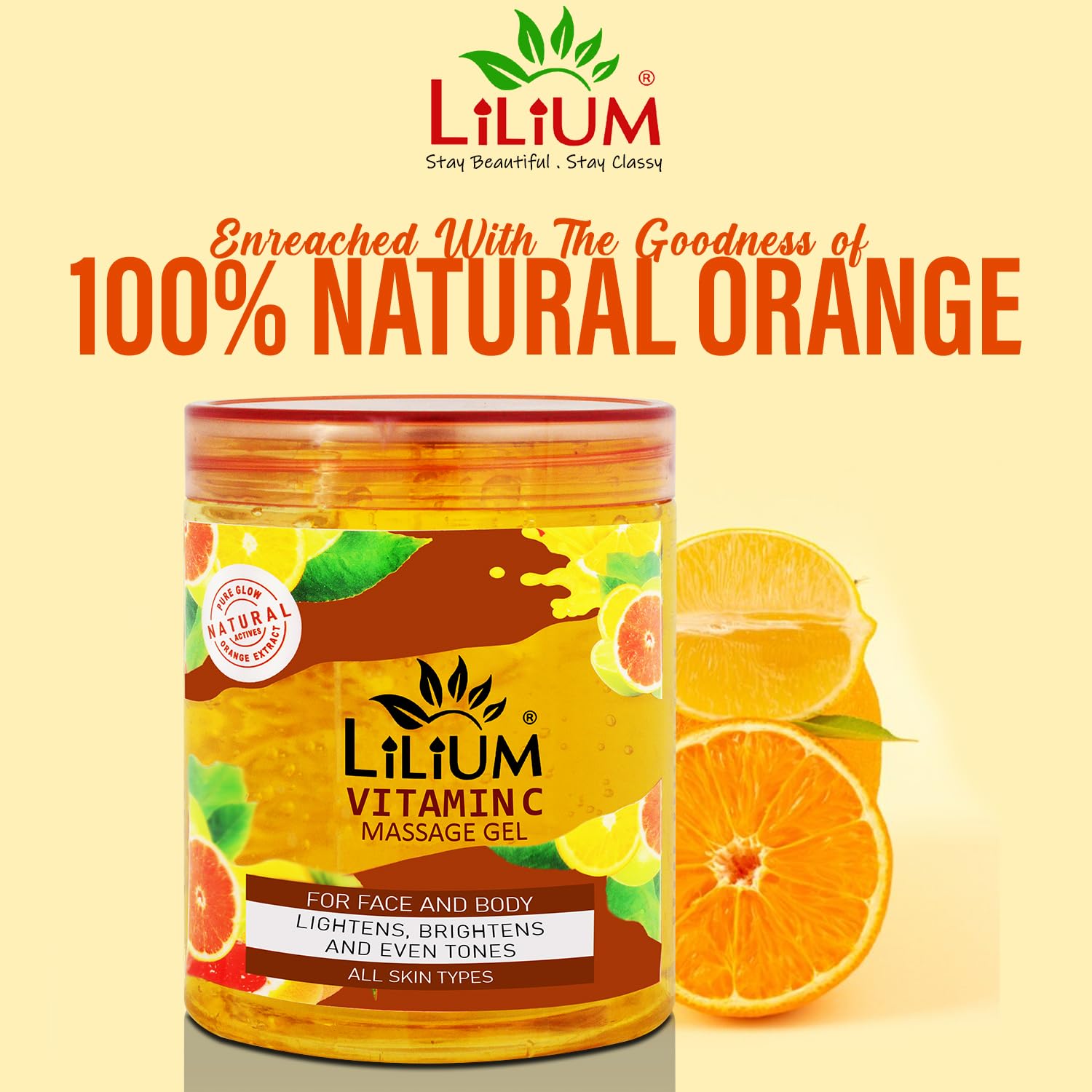 Lilium Pure Radiance Massage Gel Vitamin C 500ml | Lightens Brightens & Even Tones | Help Diminish Acne & Pimple Marks| Delay Sin Aging Wrinkles & Fine Lines | Suitable All Skin Types