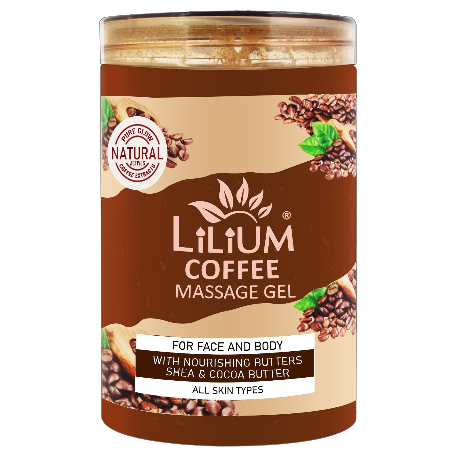 Lilium Revitalize Brew Massage Gel Coffee 500ml | With Nourishing Butters Shea & Cocoa Butter | Nourishes & Hydrates | Makes Skin Firm & Younger Looking | Suitable All Skin Types