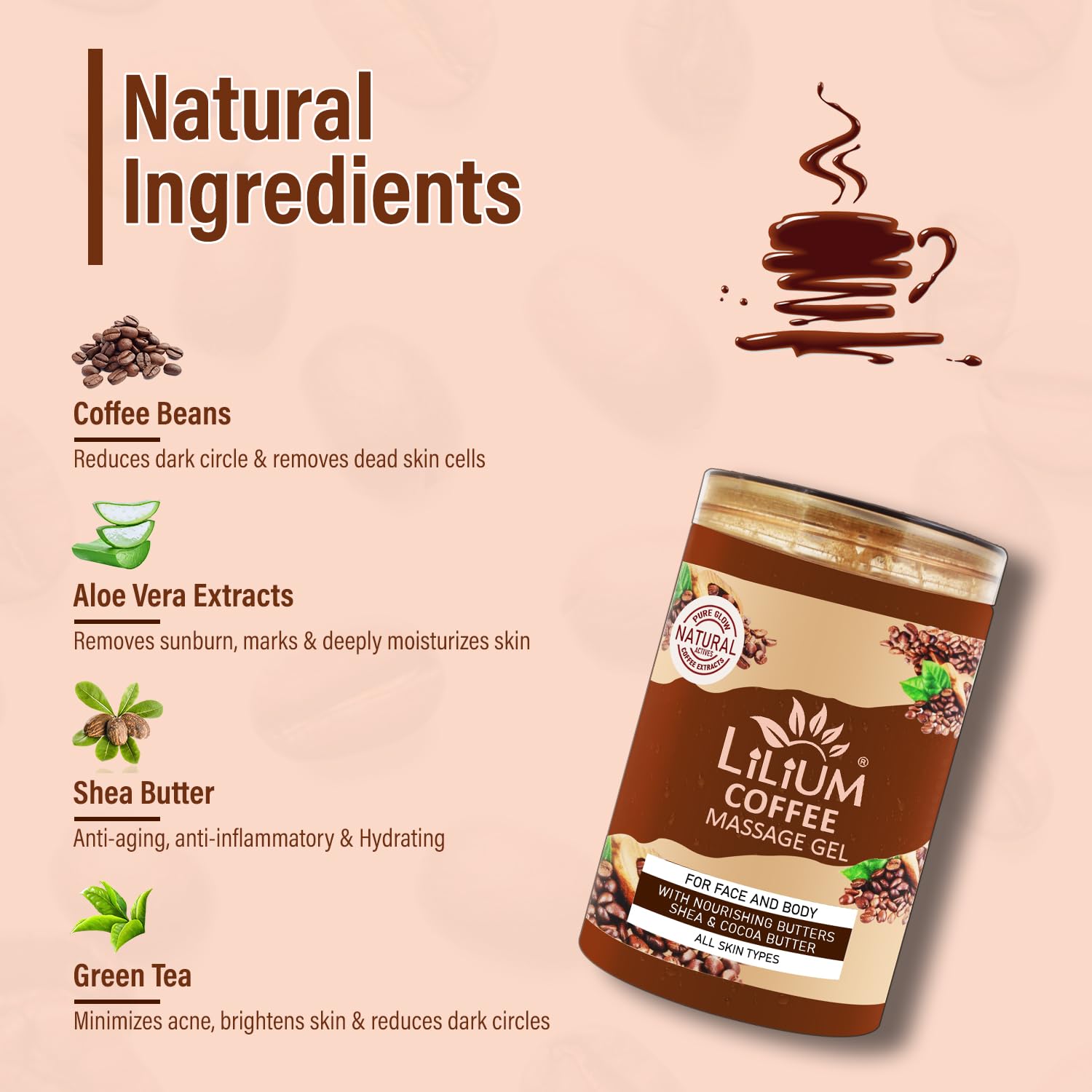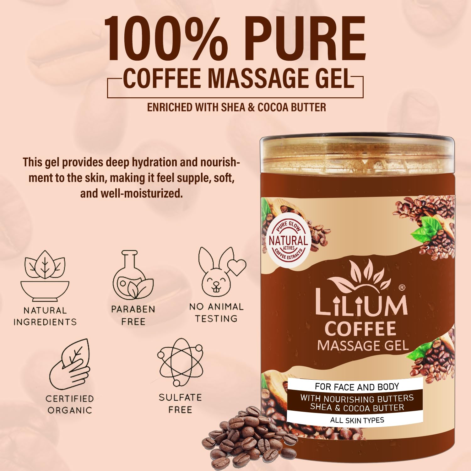 [CRUELTY & PARABEN FREE] We prioritize your well-being and the environment. Lilium Coffee Face Gel is cruelty-free and free from harmful parabens ensuring that you indulge in guilt-free skincare