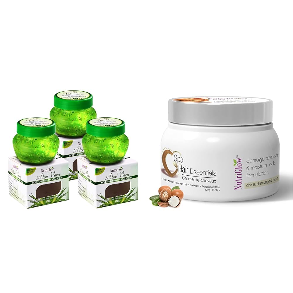 NutriGlowAloe Vera Gel Great For Face Hair 100gm Each Pack of 3Hair Spa Cream with Damage Reverse & Moisture Lock Formulation for Dry & Damaged Hair - 300g