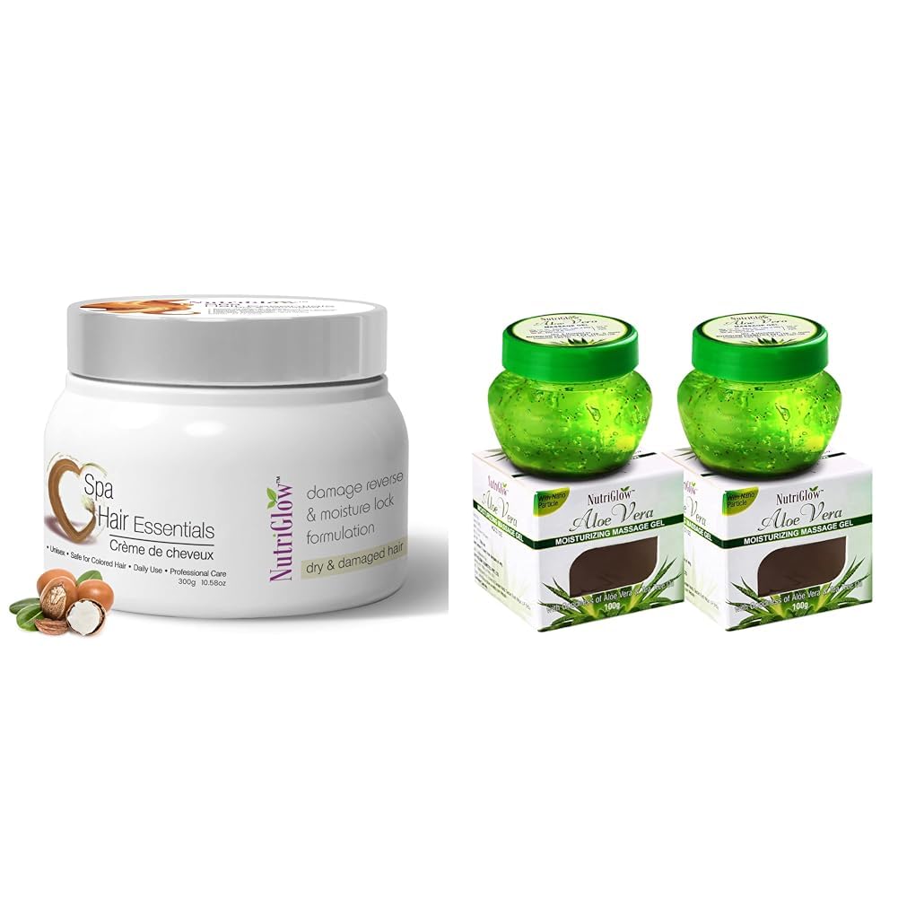 NutriGlowHair Spa Cream for Dry & Damaged Hair - 300gAloe Vera Gel Great for Face Hair 100gm Each Pack of 2