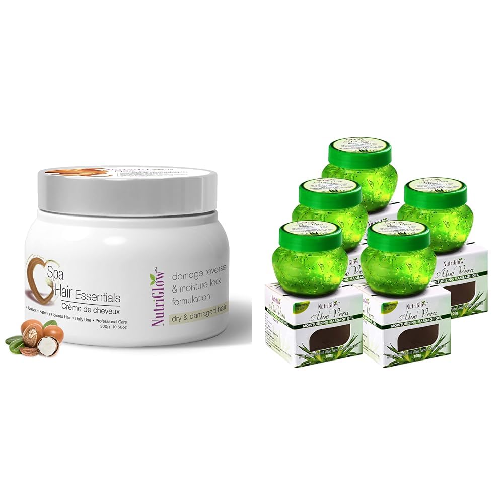 NutriGlowHair Spa Cream for Dry & Damaged Hair - 300gAloe Vera Gel Great for Face Hair 100gm Each Pack of 5