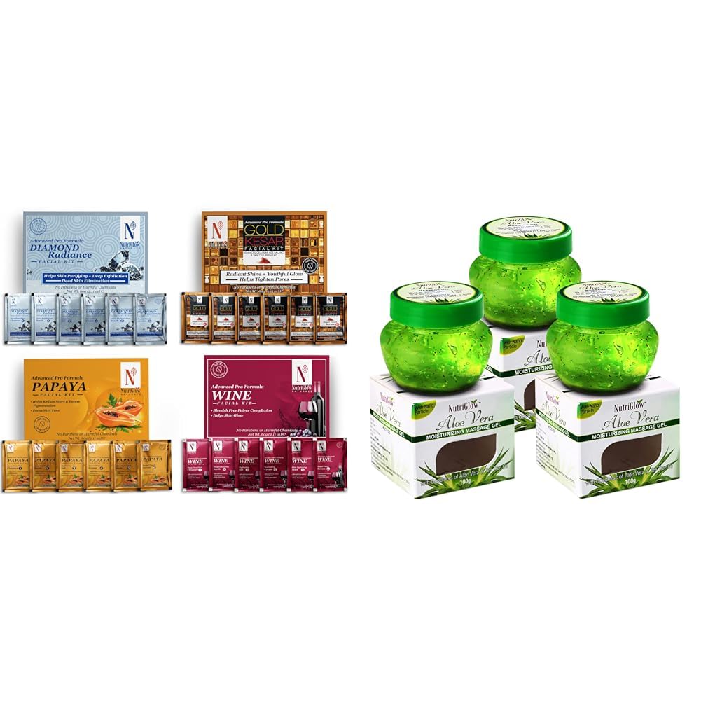Its time to reveal your natural glow with this ultimate combo of four facial kits a wine facial kit a Papaya facial kit a Gold Kesar facial kit and a Diamond radiance facial kit