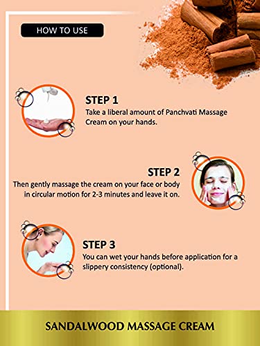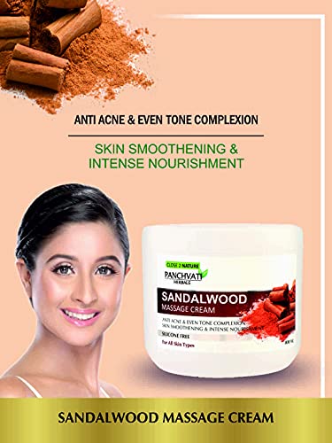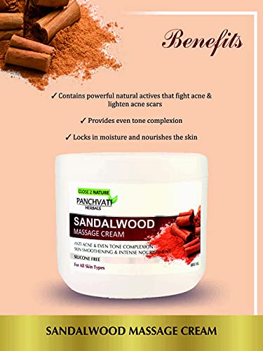 Panchvati Herbals Sandal Massage Cream has been designed specially to work as an excellent muscle relaxant this formulation also moisturizes your skin and cleans your pores thoroughly. Sandalwoodâs antiseptic properties speeds up the healing of the skin and repairs damaged skin.