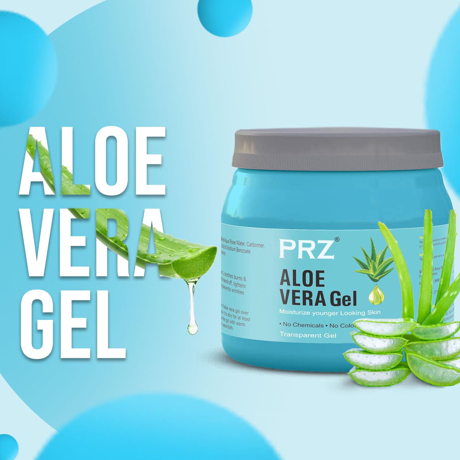 PRZ 100% Pure Natural ALOE VERA GEL Transparent (500Gram) For Body & Face Moisturizing Hair Gel Multipurpose Beauty Skin Gel Acne Scars Glowing & Radiant Skin Treatment