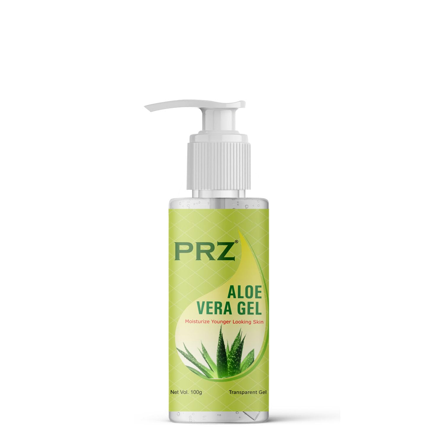 PRZ Aloe Vera Gel Transparent (100g) - 100% Pure Natural Gel for Face Acne Scars Moisturizer Glowing & Radiant Skin - No Color No Parabens Silicones Mineral Oil (Unflavoured)