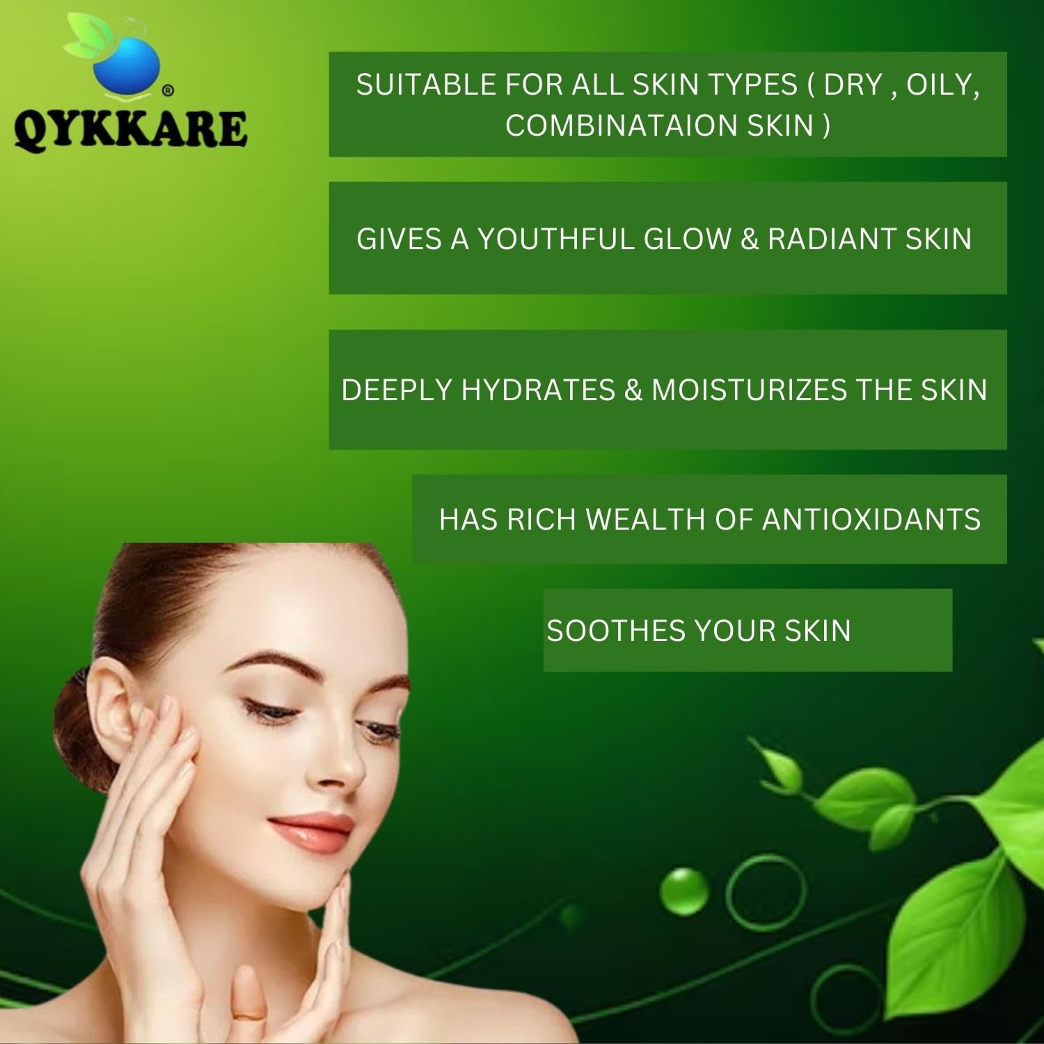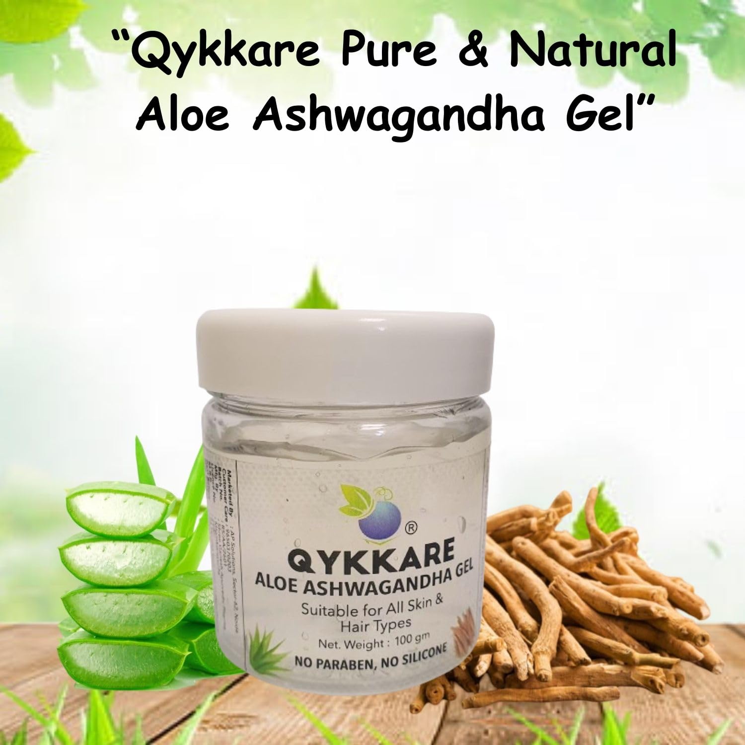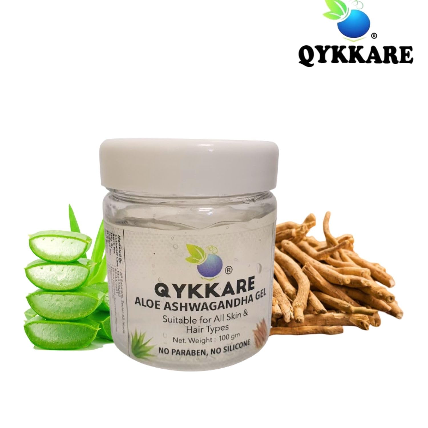 Qykkare Aloevera Ashwagandha gel for face and neck for youthful hydrated glowing skin (100gm à 2)