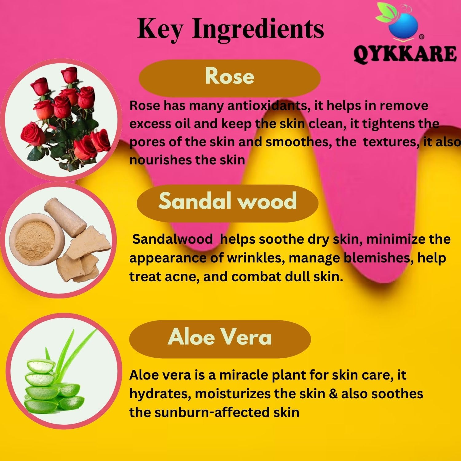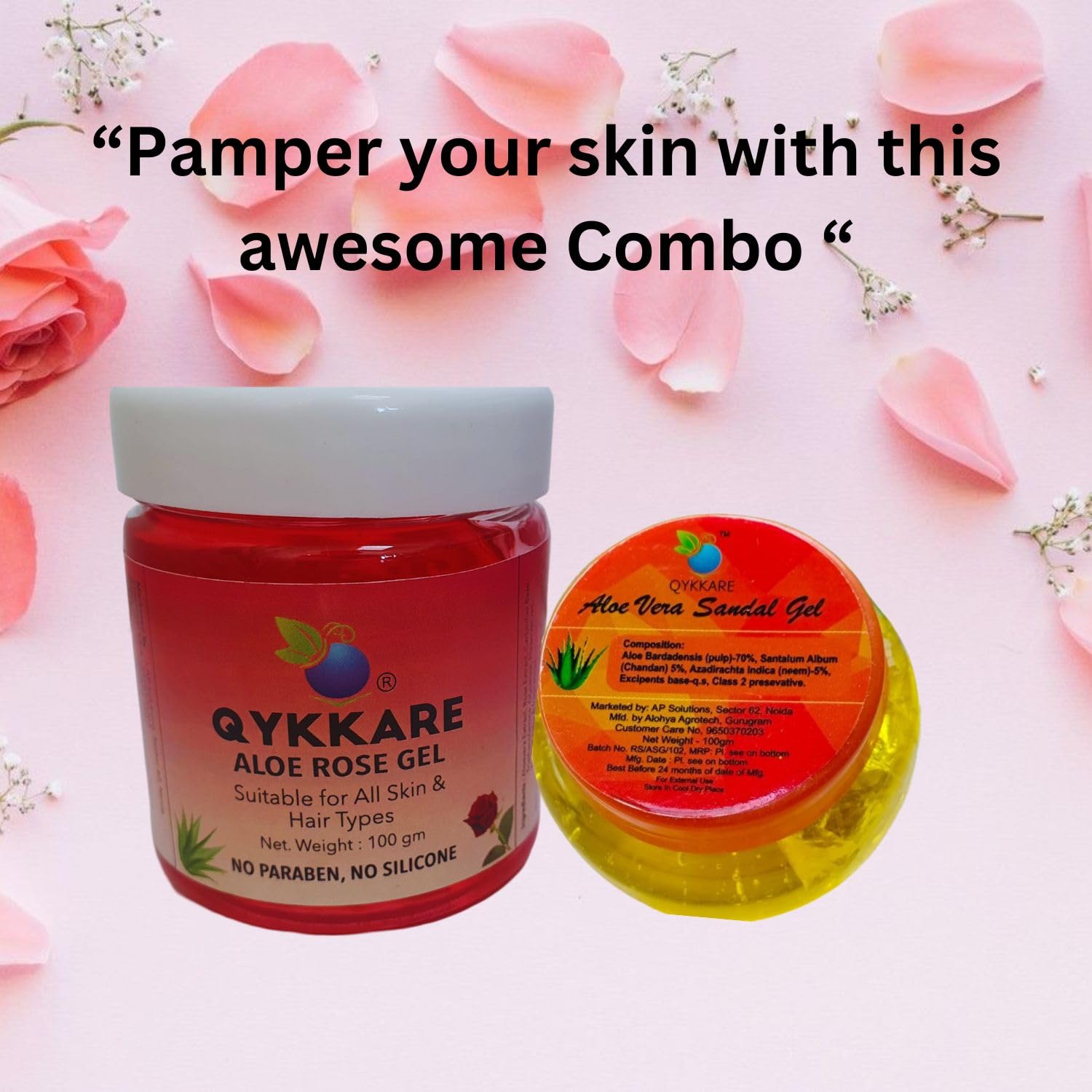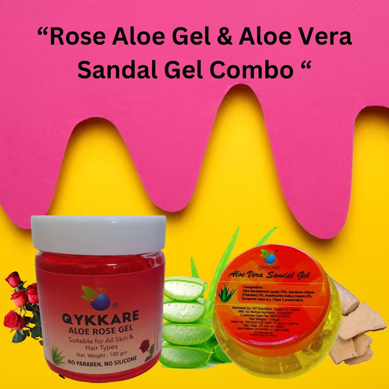 Qykkare Aloevera Sandal Gel & Rose Aloe Gel Combo (100gm x 2) | For glowing radiant bright skin