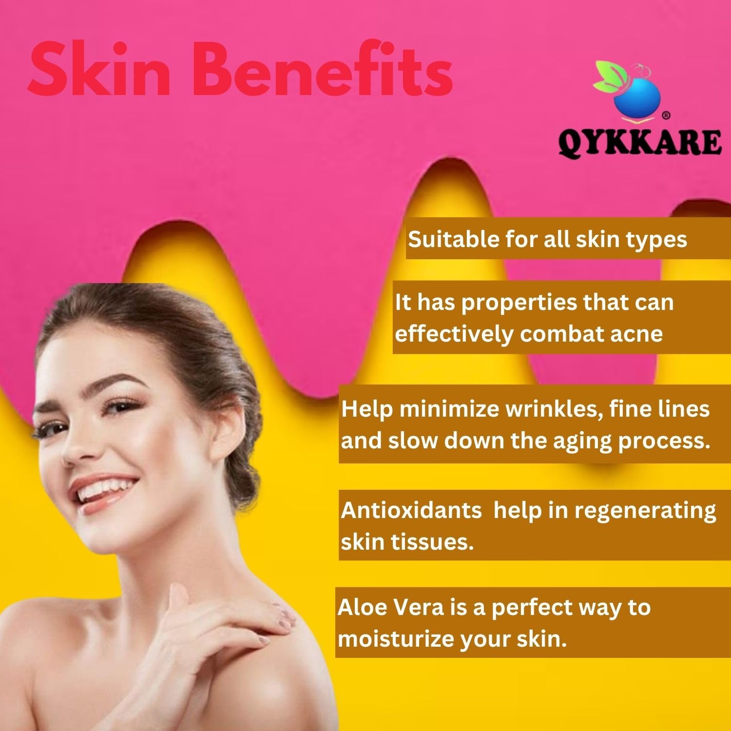 Qykkare Aloevera Sandal Gel & Rose Aloe Gel is created from freshly pulped Aloe Vera & Ashwagandha leaves to retain maximum benefits for you and your skin. The combination of a soothing sensation