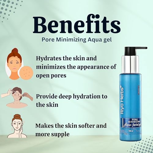 Riyoherbs Pore Minimizing Aqua Gel is formulated with powerful essential ingredients such as Raspberry seed oilTea tree oilHoneyGreen tea extract to hydrate your skin and minimize the appearance of open pores. It pulls out all dirt & dust from within the open pores & promotes cell regeneration. The gel absorbs well & gives a healthy glow.KEY INGREDIENTSDemineralized Water Tea Tree Essential oil Green Tea extract Hydrolyzed soy protein Glycyrrhiza Glabra Root Extract Raspberry seed oil Glycerin.WHY CHOOSE RIYOHERBS PORE MINIMIZING AQUA GEL ?Keeps your pores cleared of blockages thereby helping in tightening of pores.Green tea extract works as an astringent which shrinks pores.Raspberry seed oil and tea tree oil together provide hydration to the skin.Heals skin deeply and leaves a cooling sensation.Makes skin more soft and supple.