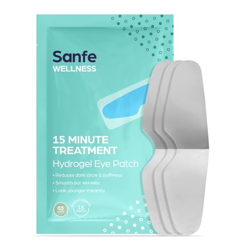 Sanfe Hydrogel Eye Patch | 15 min treatment | Reduces dark circle, puffiness, wrinkles | Brighten, look younger | 3 Pairs, For men & women