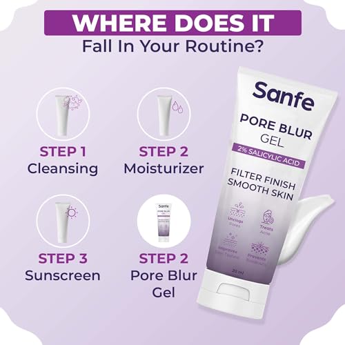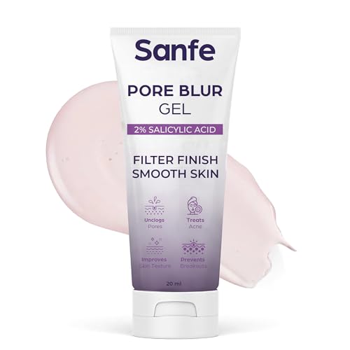 Sanfe Pore Blur Gel | Primer Finish Plus | 2% Salicylic Acid and Hyaluronic Acid | Blurs Pores, Wrinkles & Fine Lines, Hydrating and Lightweight l Treats Acne, Prevents Breakouts, 20gm