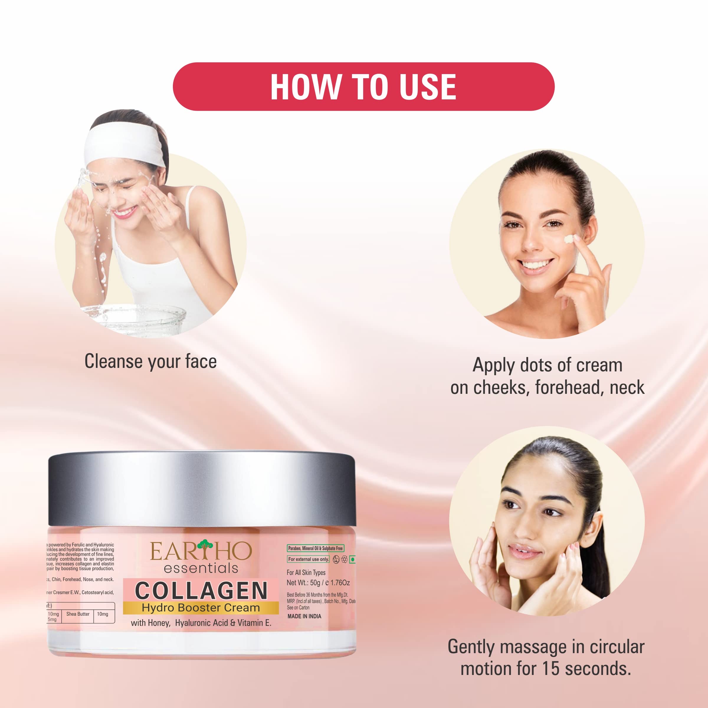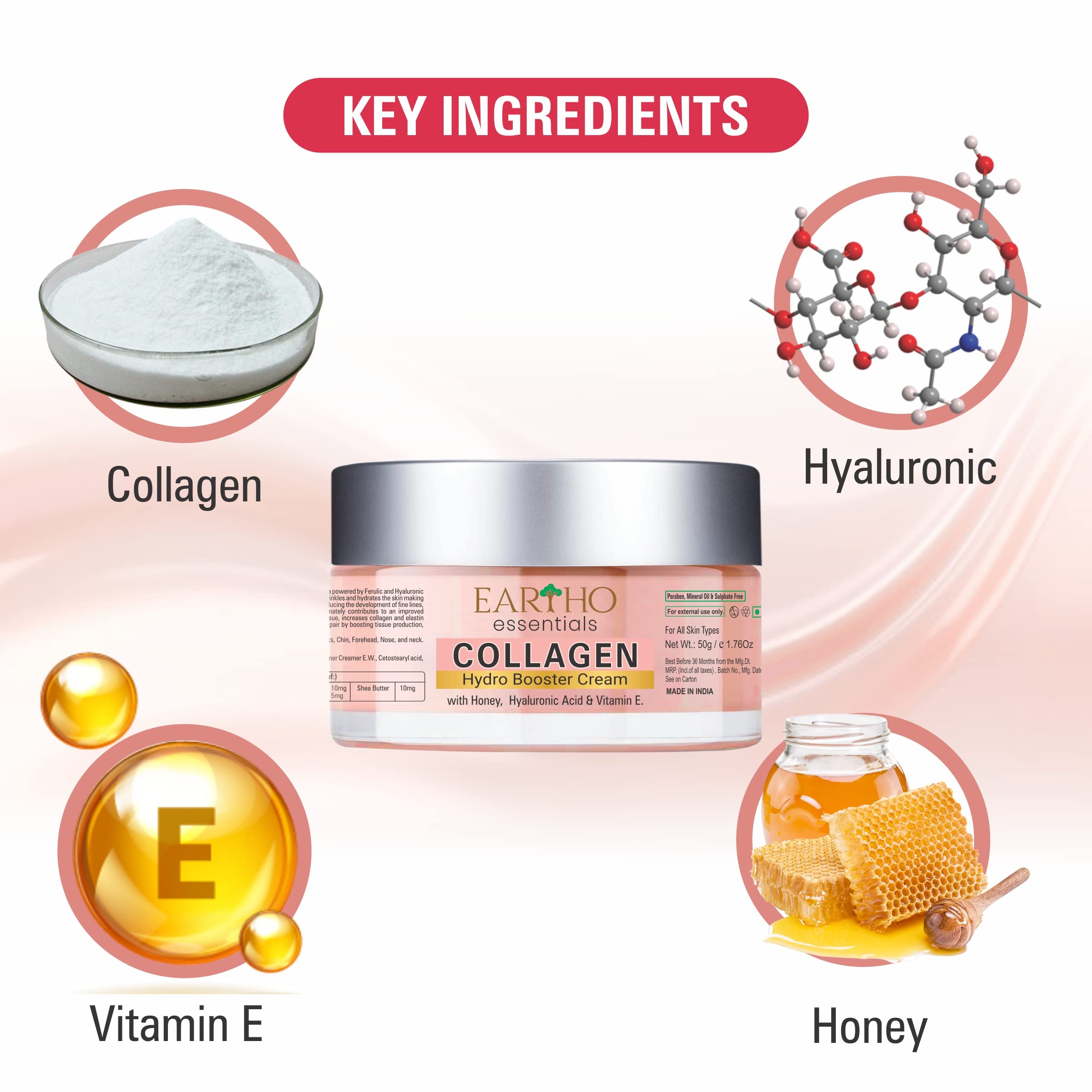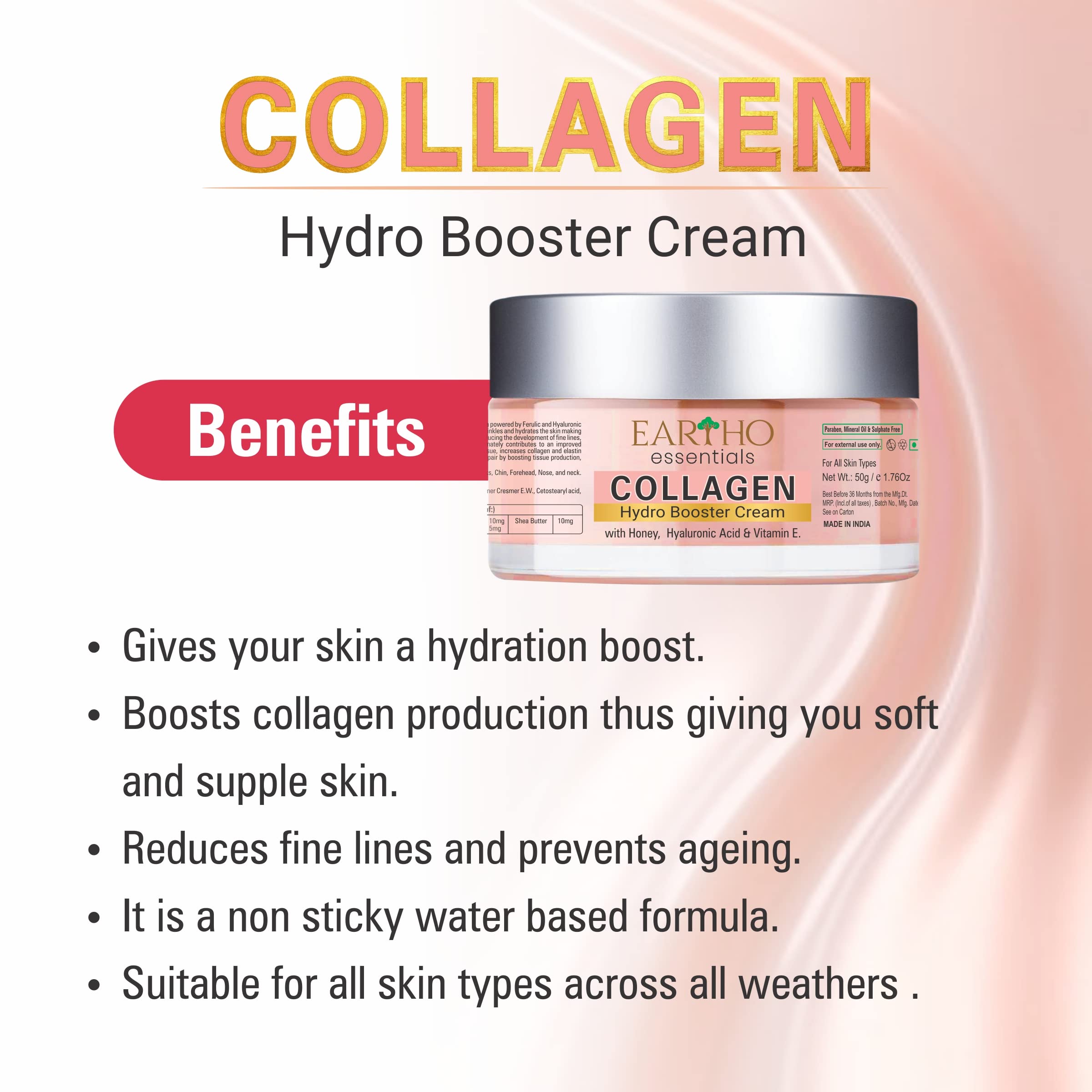 Eartho Essentials Collagen Hydro Booster Cream with Hyaluronic Acid Honey and Vit-E 50 Grams