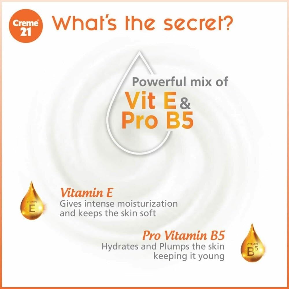 Tired of the rough dry and under nourished feeling skin during winters? Try the Creme 21 All Day Cream. But first why choose Creme 21? Creme 21 enriched with Vitamin E & Pro - Vitamin B5 deeply moisturizes nourishes and protects the skin Vitamin E is a powerful antioxidant that may be effective at reducing UV damage and deeply nourishes your skin. Pro-Vitamin B5 helps to keep skin soft smooth and healthy How to use? Scoop product onto hands. Rub on palms. Gently massage over face & body. Use daily for nourished and healthy skin