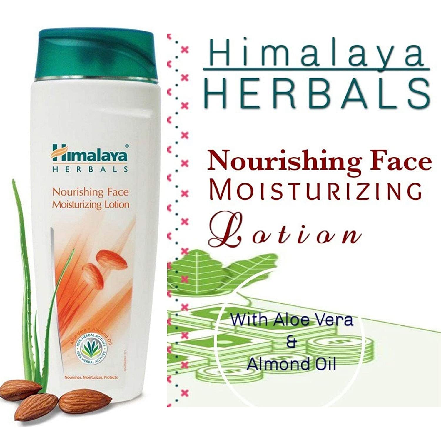 Nourishing Face Moisturizing Lotion: Rehydrate your skin. What it does: Himalaya's Nourishing Face Moisturizing Lotion helps you recover lost natural moisture and nutrients due to skin's frequent exposure to environmental extremes pollution and chemicals. It combines natural ingredients that restore your skin's vitality throughout the day. It is enriched with Aloe Vera a natural moisturizer rich in polysaccharides and enzymes and White Lily that lightens your skin. Oils of Almond and Carrot Seed combine to protect your skin from the damage caused by exposure to pollution and sunlight. The lotion is a perfect base for make-up. Key ingredients: Aloe Vera soothes and moisturizes dry skin. Almond Oil is an excellent skin softener which hydrates your skin. Carrot Seed Oil contains vitamin A in the form of beta-carotene which is essential for tissue growth on the skin's surface. It is also beneficial in reversing the effects of sun damage. White Lily has anti-pigmentation whitening and bleaching properties that inhibit melanin formation. It also regenerates new skin cells.