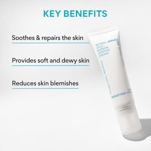 Innisfree Retinol Cica Barrier Defense Cream, 1.7 fl oz (50 ml), Retinol, Trouble Care, Moisturizing, Hypoallergenic, Sensitive Skin, Koream Skincare Cream