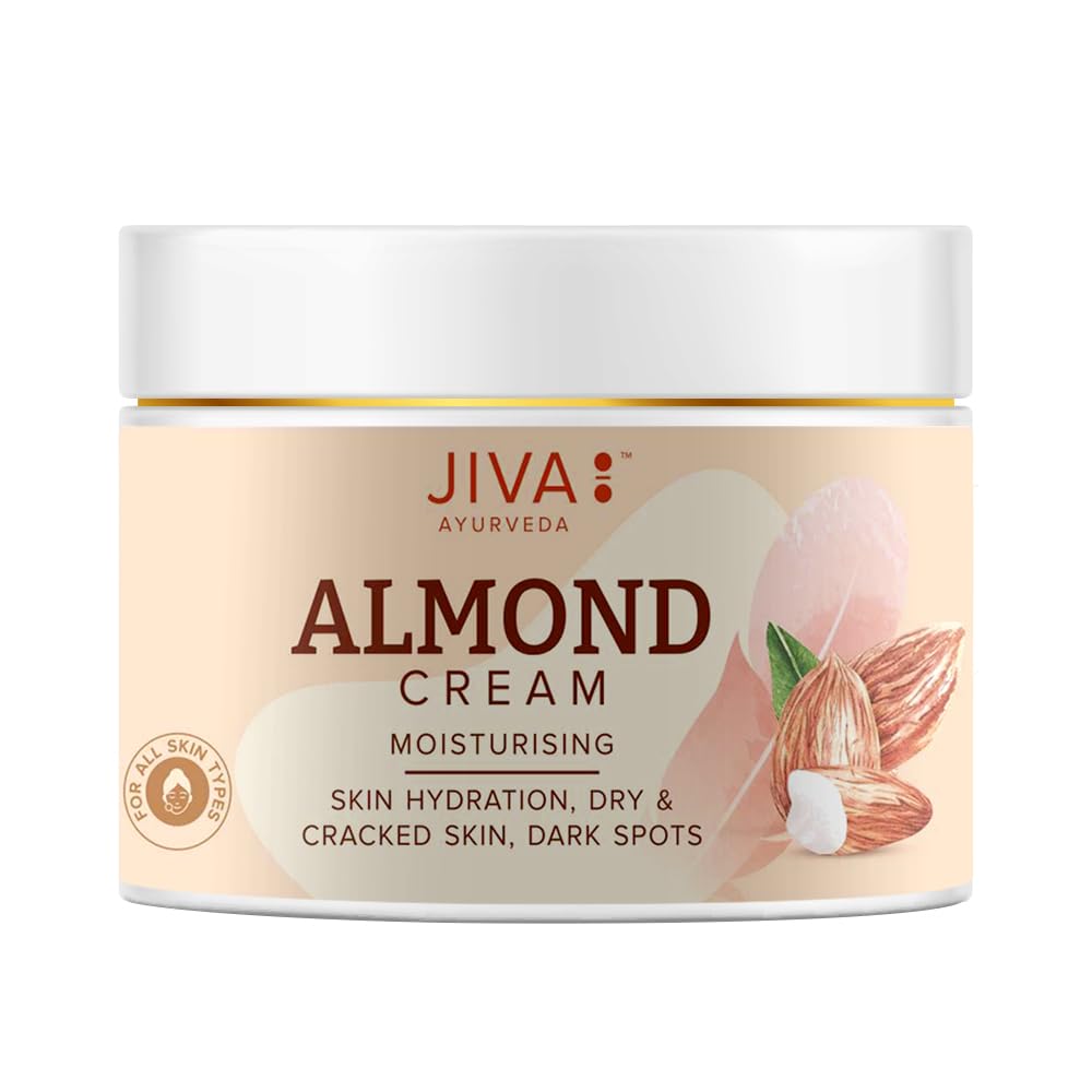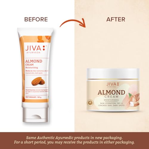 Jiva Almond Cream 100% Ayurvedic Formula Free From Paraben & Silicone | Helps With Dry Skin, Dark Spots, Wrinkles & Pigmentation | Protects Skin From UVA & UVB Rays- 100gm(Pack of 1)