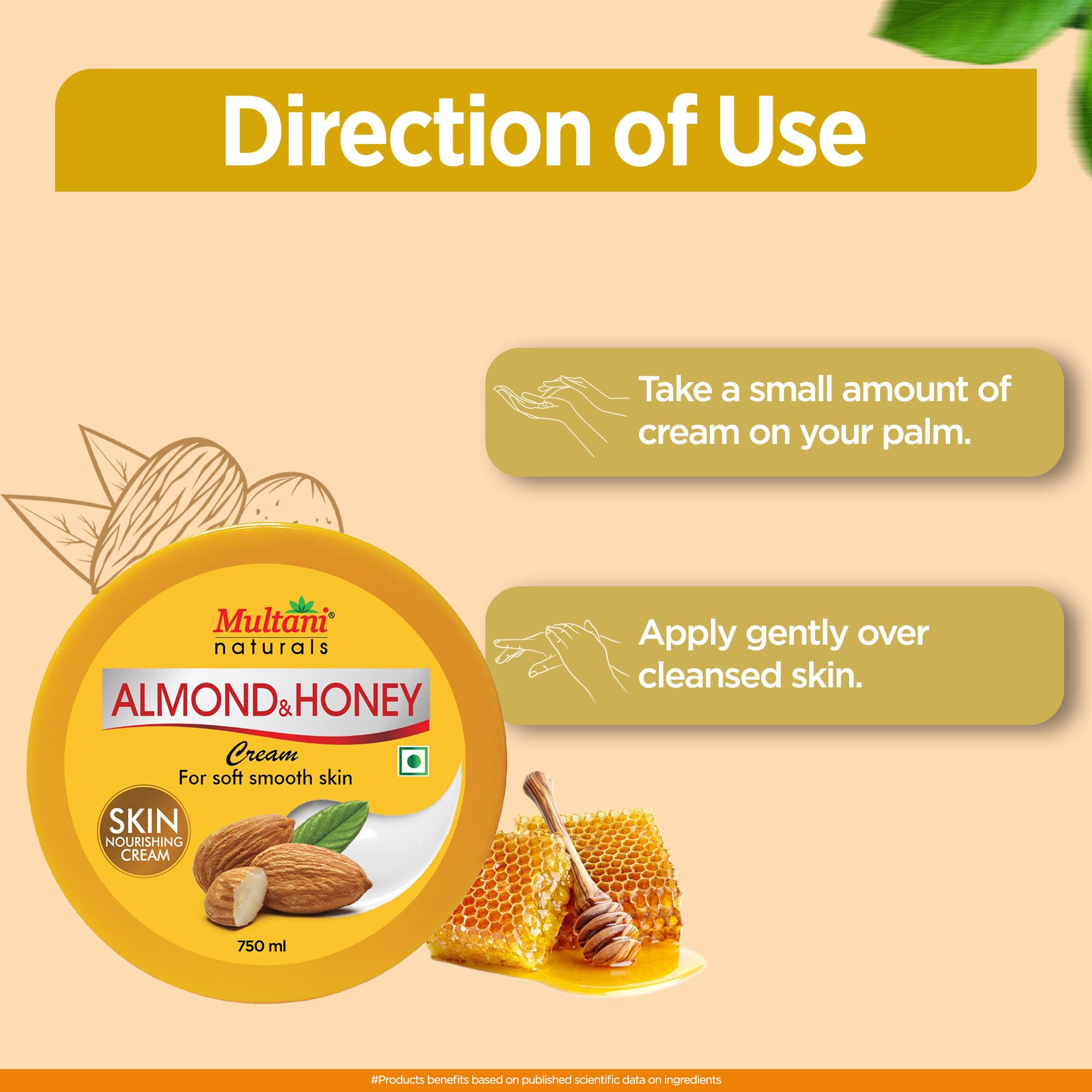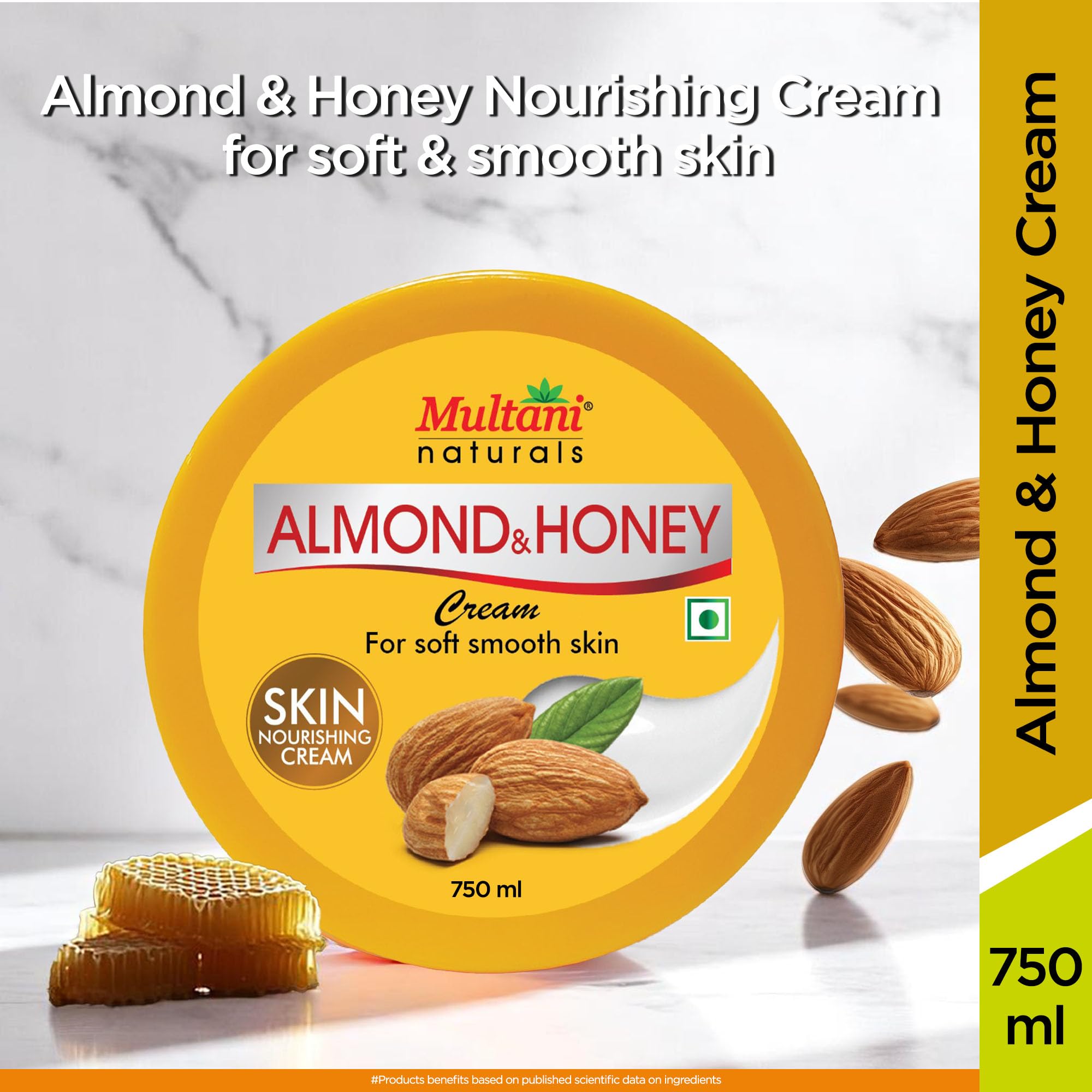 Multani Naturals Almond & Honey Cream | Deep Nourishing Hands & Body | Skin Cream with Natural Sunscreen For Glowing Skin | Protects for Dryness & Retains Natural Moisture 750 Ml