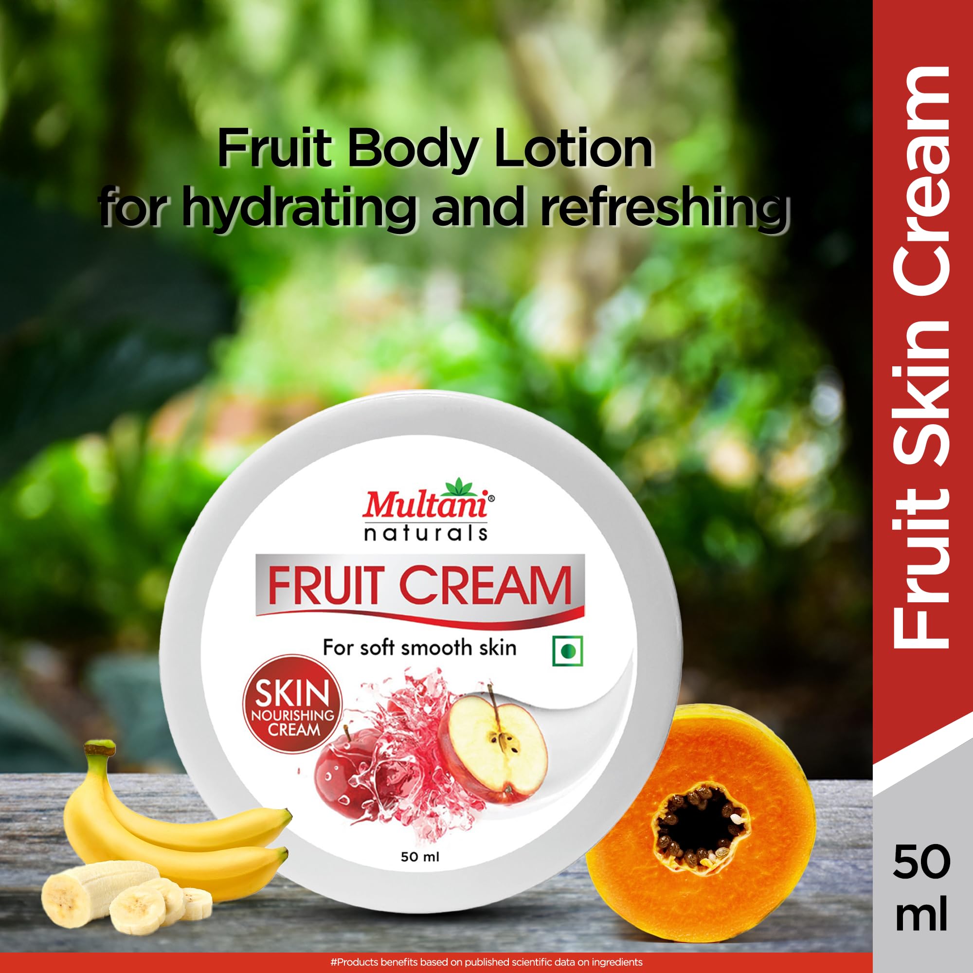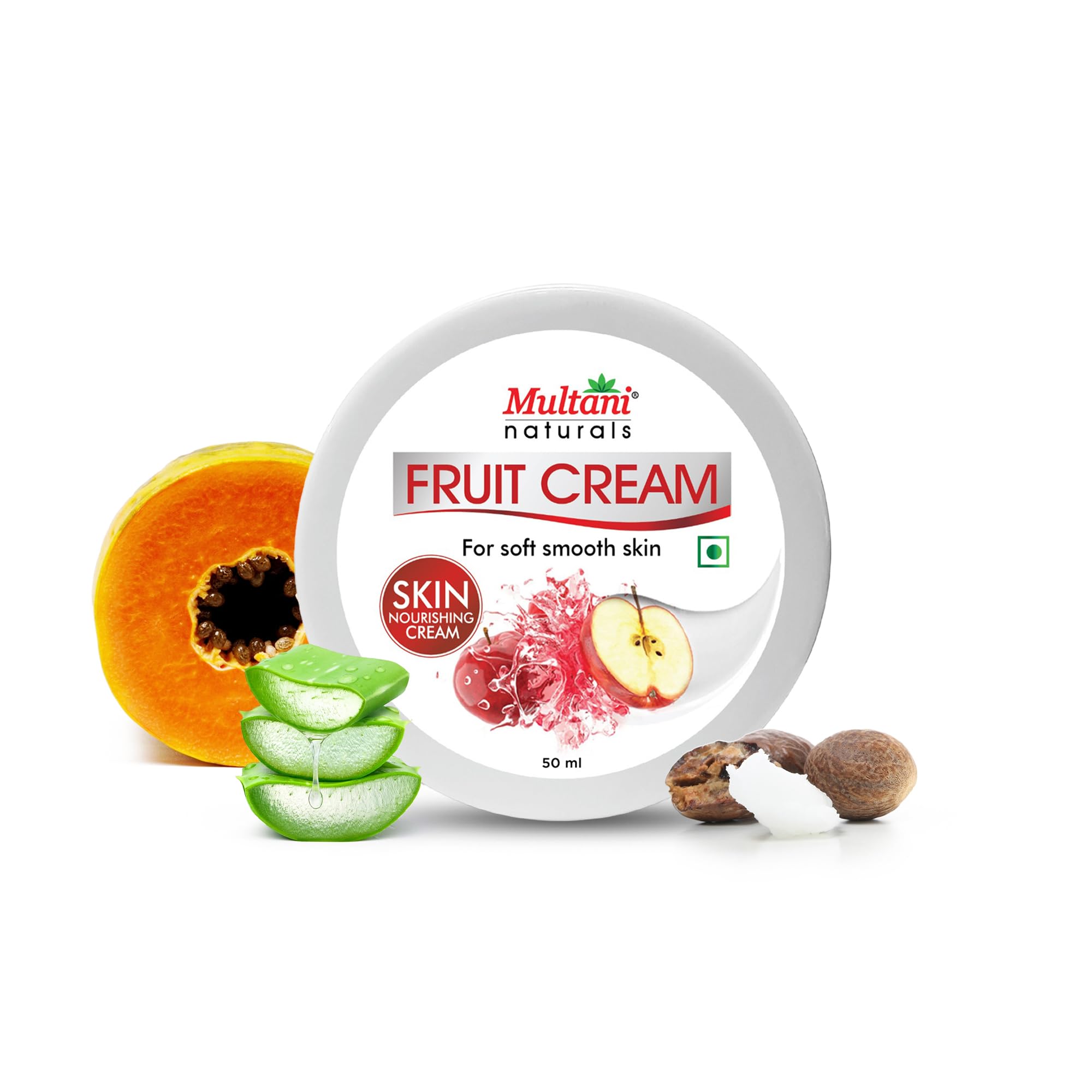 Multani Naturals Fruit Cream Moisturizing Skin Cream With Apple Quick Absorbing & Non Sticky Moisturizer for Face Hands & Body | For Healthy Soft & Glowing Skin | 50 Ml