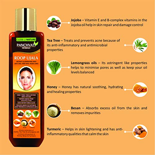 Panchvati Herbals Roop Ujala Instant Illuminating Pack For Instant Shine And Glow, Improves Skin Texture & Reduces Blemishes, Repairs Damage From Sun And Pollution - 200 Ml