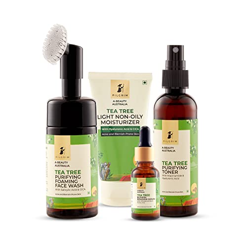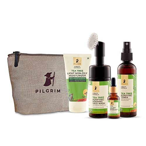 HomeBeautyFace CareMoisturizersFace Moisturizer & Day CreamPilgrim Tea Tree Night Ritual Premium for Acne-Free Skin with FREE JUTE BAG|Tea Tree & 1% Salicylic acid Foaming Face wash with brush , 2% Niacinamide toner, Gel moisturizer, 10% Niacinamide serum.