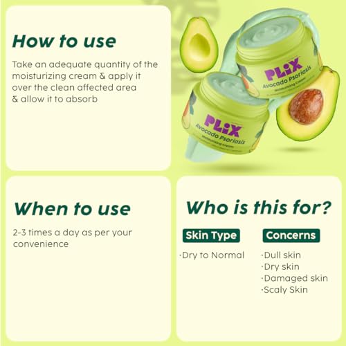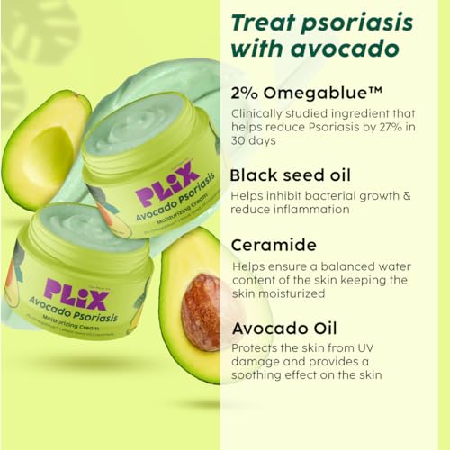 PLIX - THE PLANT FIX Avocado Psoriasis Moisturizing Cream with 2% Omega Blue | Manages Eczema & Psoriasis| Relieves Scaling & Redness | For Dry & Flaky Skin | Dermatologically tested | For Men & Women