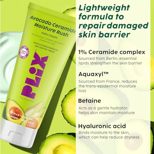 PLIX - THE PLANT FIX Plix-The Plant Fix Avocado Ceramide Moisture Rush Fatty Cream With Spf 20 | Deep Moisturization | Barrier Repair Cream | For Dry Skin, Normal Skin & Sensitive Skin | 50G