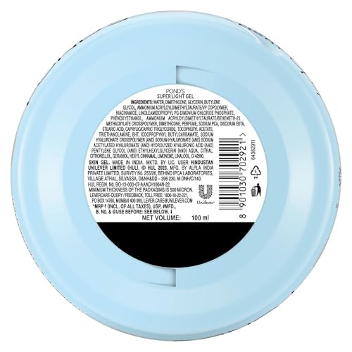 ponds Super Light Gel Oil Free Face Moisturizer 100 ml, With Hyaluronic Acid & Vitamin E for Fresh Glowing Skin & 24 hr Hydration - Daily Use