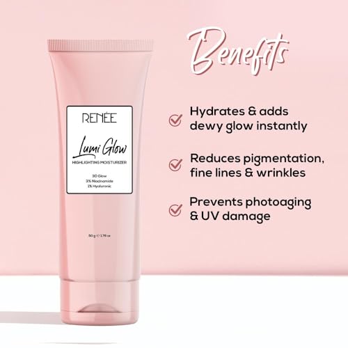 RENEE Lumi Glow Highlighting Moisturizer | Enriched with 3% Niacinamide & 1% Hyaluronic Acid | Prevents Photoaging & UV Damage | Reduces Pigmentation, Fine Lines & Wrinkles | Non-Sticky | Glowing Skin | 50g