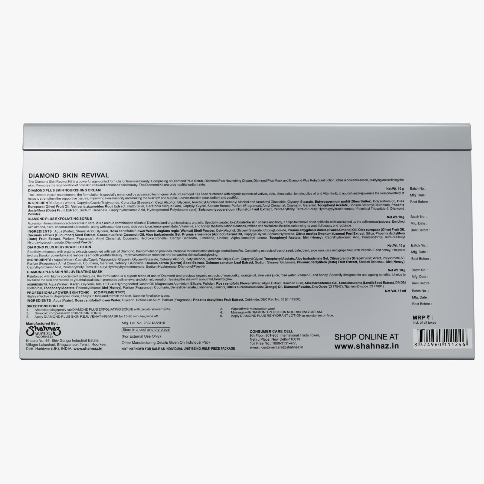 Diamond Skin Revival Kit 10gx4 + Total Care Day Long Sun Block (SPF 25) 100g + Hand Wash â Herbal Hand Sanitizer-50ml The Diamond Skin Revival Kit is a powerful age-control formula for timeless beauty. Comprising of Diamond Plus Scrub Diamond Plus Nourishing Cream Diamond Plus Mask and Diamond Plus Rehydrant Lotion it purifies the skin. This Diamond Skin Revival Kit regenerates new skin cells and enhances skin beauty. The Diamond Kit ensures a healthy radiant skin.
