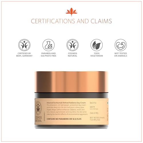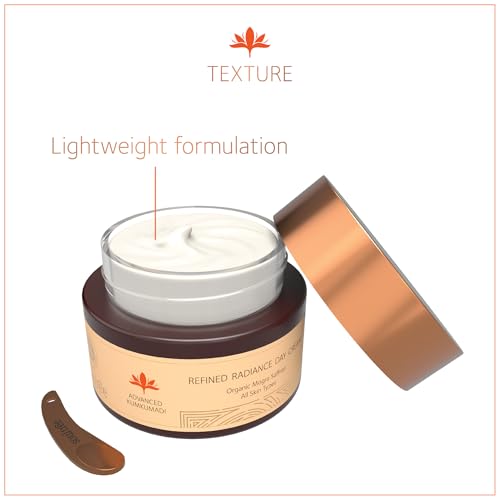 Our Advanced Kumkumadi Refined Radiance Day Cream smells like Lotus and that is why it can be called Padmagandhi. This Cream is filled with the goodness and richness of Ashwagandha Jasmine water Shatavari extract Almond oil Kumkumadi oil and other rich Ayurvedic herbs. As you apply this Cream to your cleansed and toned face it glides like dew on the lotus petal and nourishes your skin like no other skin nectar. This antioxidant-rich lightweight protective day cream penetrates deep into the skin and gives a dewy glow. 100% Organic Mongra Saffron enhances radiance evens skin tone reduces pigmentation and nourishes the skin while reducing the harmful effects of environmental aggressors.