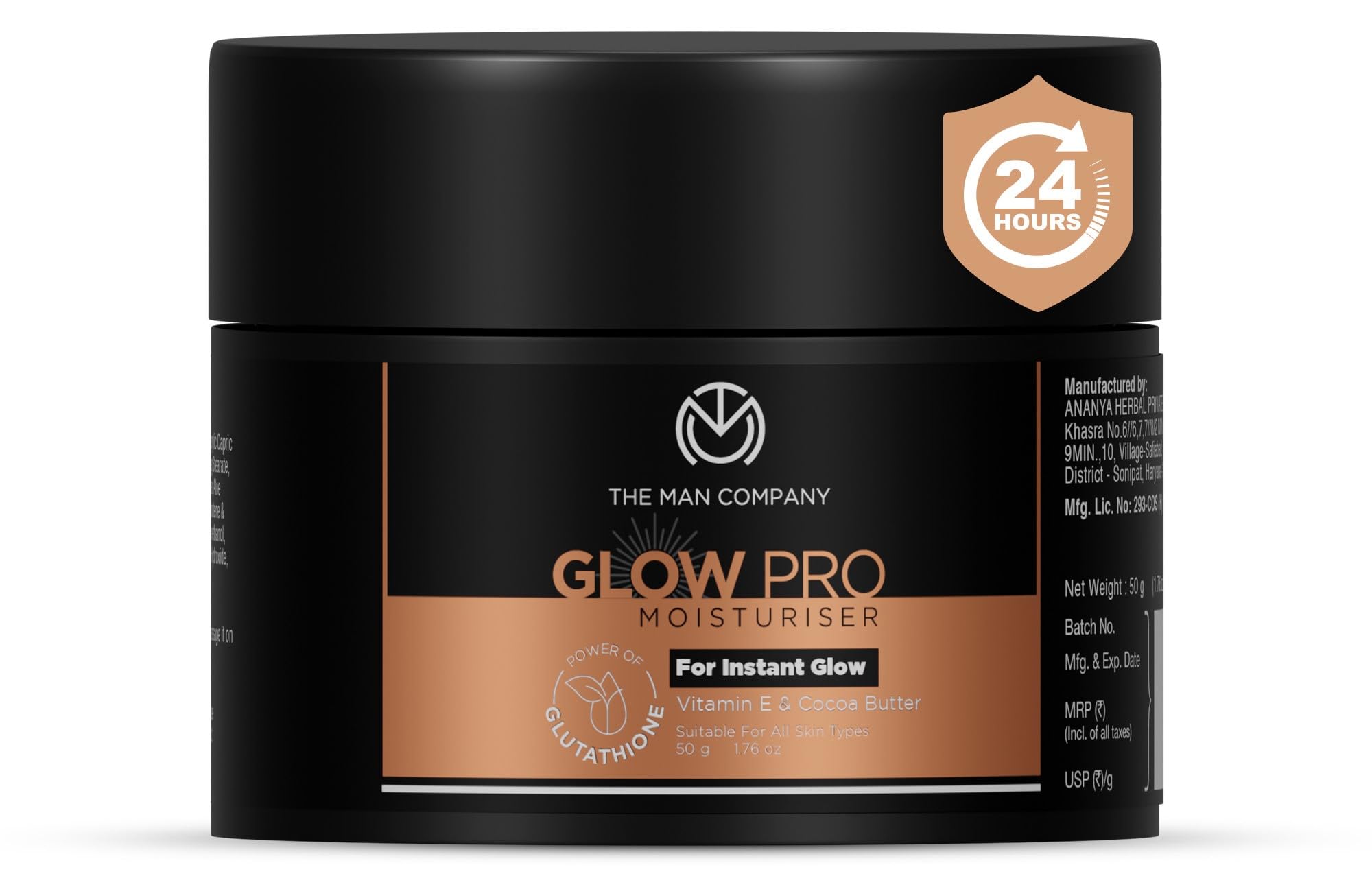 The Man Company Glow Pro Non-Sticky Daily Moisturizer for Face | Moisturizes Hydrates with Glutathione Vitamin E & Cocoa Butter | Face Moisturizer Cream for Men - 50 gm