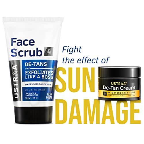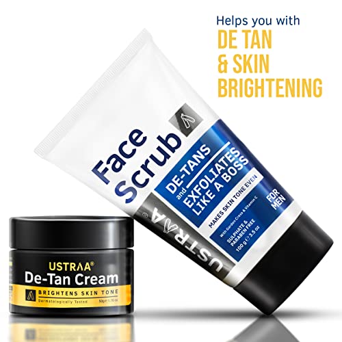 HomeBeautyFace CareMoisturizersFace Moisturizer & Day CreamUstraa Total De-Tan Kit - De-Tan Face Cream, 50gm - Effective Tan Removal | & De-Tan Face Scrub - With Walnut Granules, 100gm- Helps in Tan Removal & Even Skin Tone | For All Skin Types | No SLS