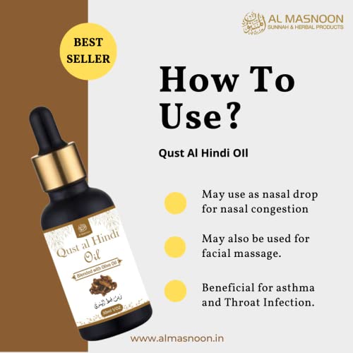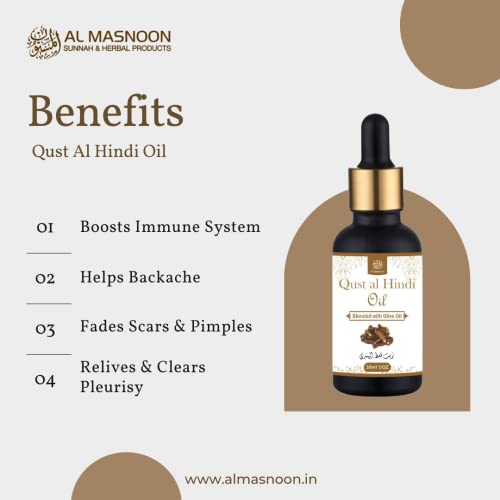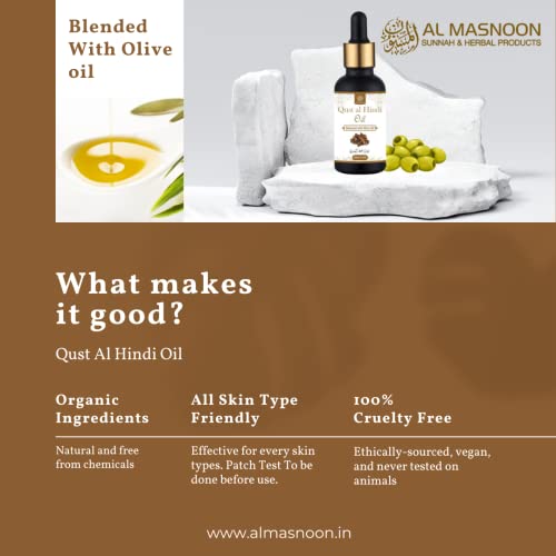 AL MASNOON Qust Al Hindi Oil 30ml | 100% Natural Infused with Olive Oil - Pack of 1 |