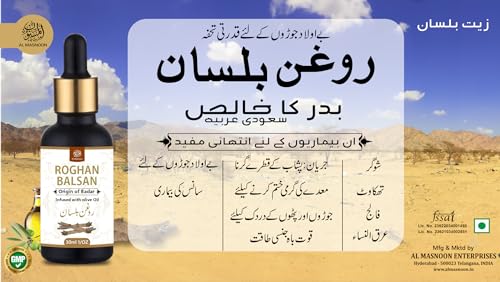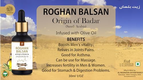 AL MASNOON Roghan Balsan/Balsan Oil From Badar Saudia/Infused With Olive Oil / 100% Natural & Pure 30ml (Pack of 1)