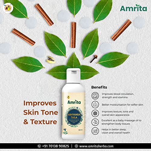 Amrita Abhyanga Taila is made with pure natural herbs that helps improve skin tone and texture. It is also an excellent body massage oil that helps in muscle health, improves blood circulation and prevention of body odour.