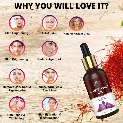 HomeBeautyFace CareMoisturizersFace OilsINTIMIFY Kumkumadi Tailam For Face, Kumkumadi Face Oil For Glowing Skin, Face Serum For Wrinkles, Whitening, Lightening & Pigmentation (30 ml) Pack of 1