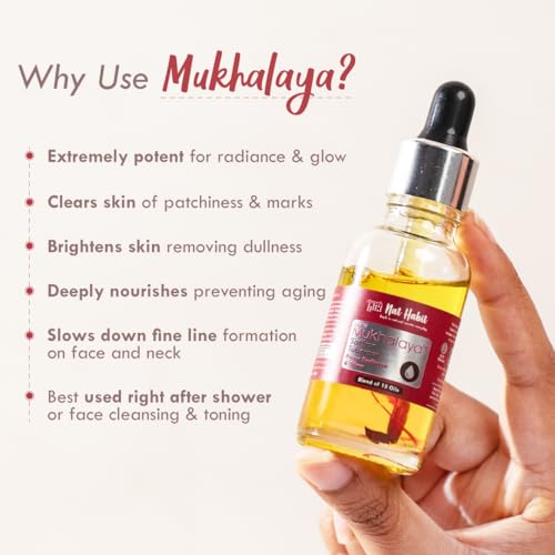 Nat Habit Face Oil, Saffron Tuberose Mukhalaya For Women Skin Radiance & Glow, with Blend of 15 Cold Pressed Oils To Brighten Skin & Remove Dullness,15ml