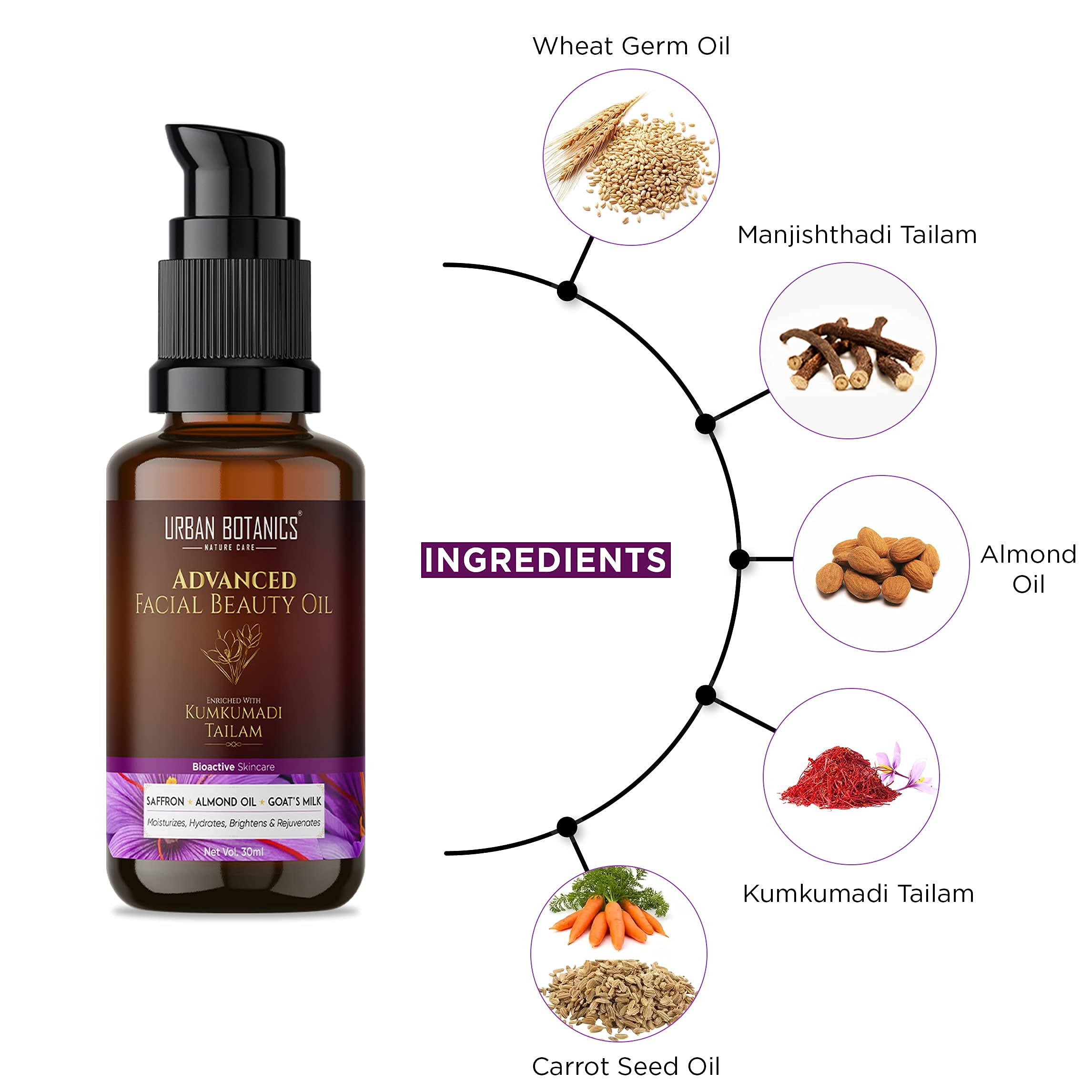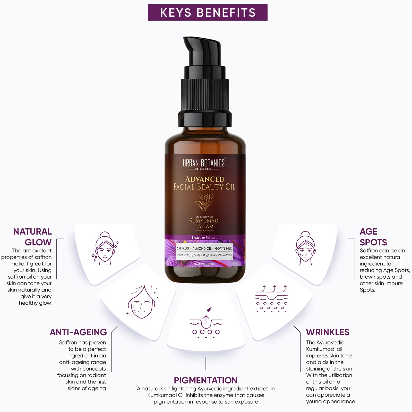 UrbanBotanics Kumkumadi Tailam for Skin | Kumkumadi Oil for Face Wrinkles Fine Lines Pigmentation - Men & Women 30ml