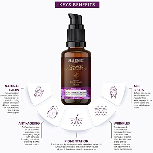 UrbanBotanics Kumkumadi Tailam for Skin | Kumkumadi Oil for Face Wrinkles, Fine Lines, Pigmentation - Men & Women, 30ml
