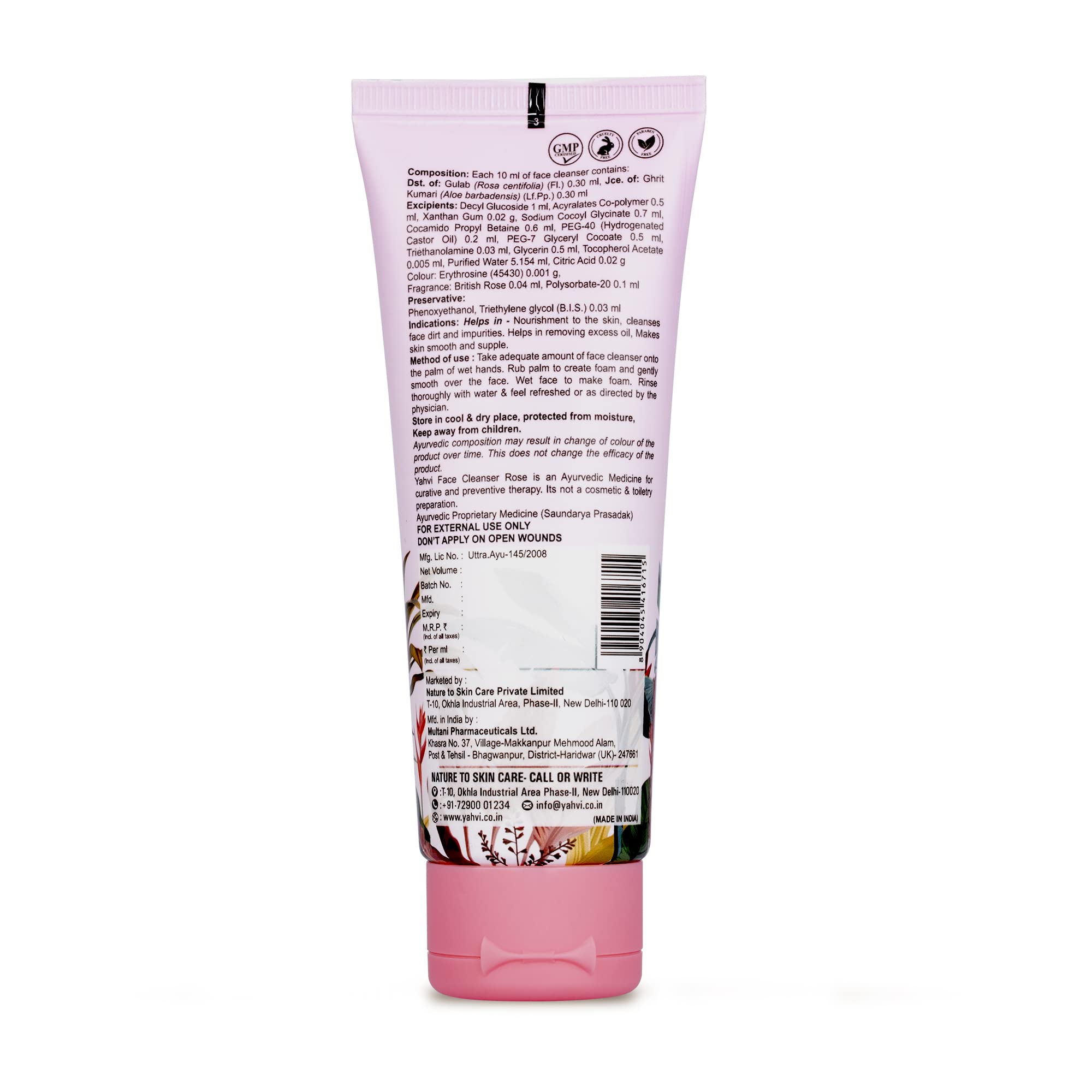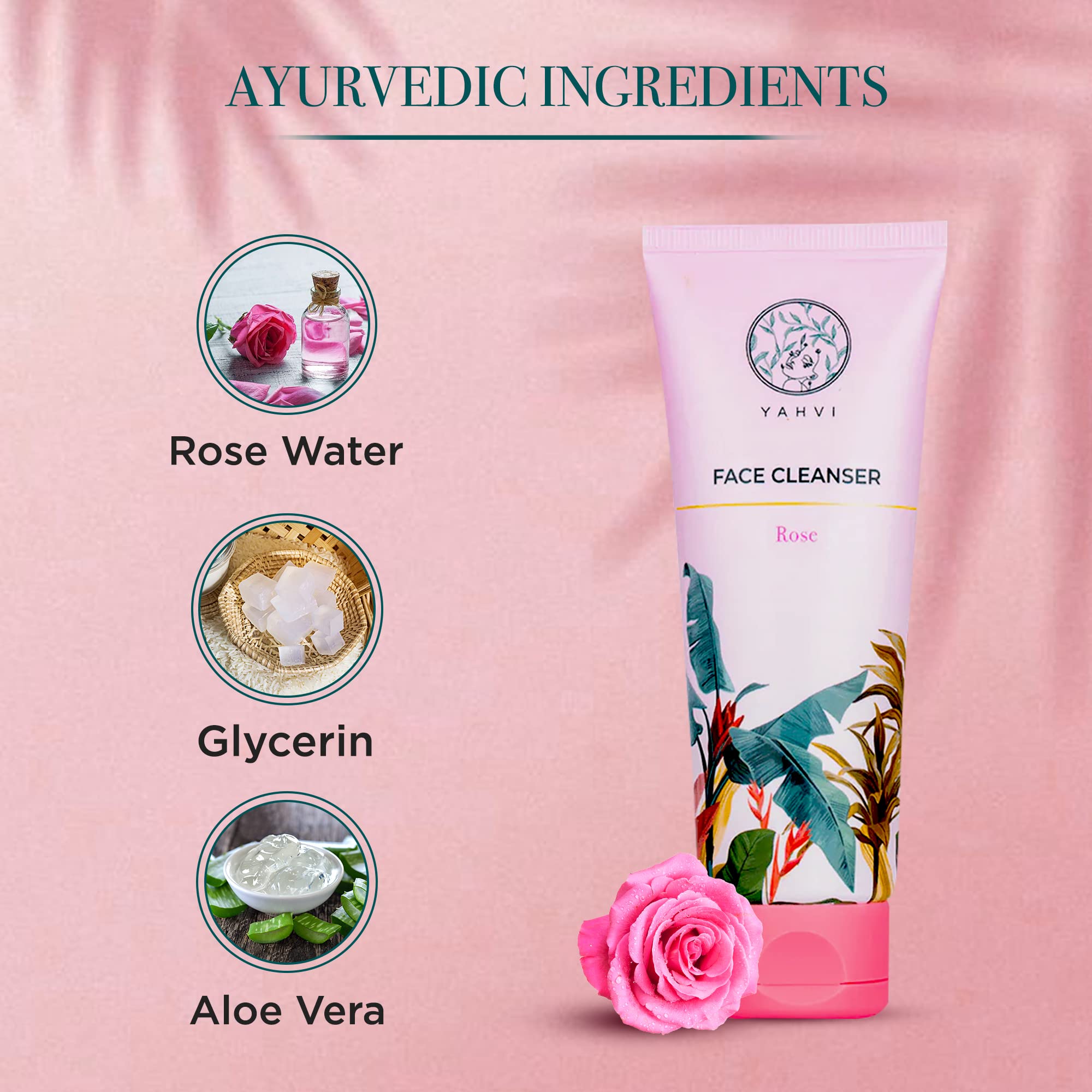 Yahvi Face Cleanser Rose | Enriched with Rose Glycerin & Aloe Vera | Hydrating Cleanser | Removes Dirt Pollution & Makeup | All Skin Types | Ayurvedic Formula | Paraben-Free Cruelty-Free | 100 Ml