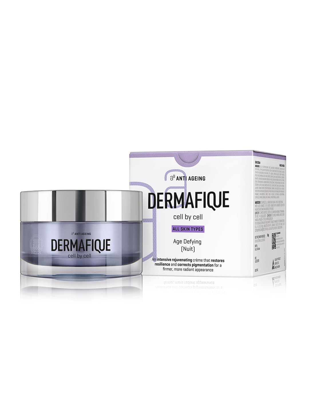The process of aging has already been underway long before the signs of aging become apparent. Skin aging starts with the slowing down of the cell renewal process and the degeneration of collagen. Once this happens you begin noticing the signs of skin aging; sagging fine lines wrinkles pigmentation dark spots open pores uneven skin tone as well as dull and dry skin. Thanks to technological advancements in skincare it is possible to target and correct this damage and an effective way to do this is with an anti-aging night cream. At night your skin repairs and regenerates itself recovering from the dayâs stress. At this time the skin is also more receptive to skincare products. It is the perfect time to let your skin soak up the active ingredients in an anti-aging night cream. The Dermafique Age-Defying Nuit is an anti-aging cream powered by advanced Plant Stem Cell Technology known as PhytoCellTecâ¢. It is made from the stem cells that are extracted from Uttwiler Spätlauber a rare Swiss apple that is celebrated for its exceptional longevity and regenerative power. This anti-aging cream boosts the cell renewal process and aids collagen regeneration thus preserving the springiness of the skin and delaying the effects of aging.