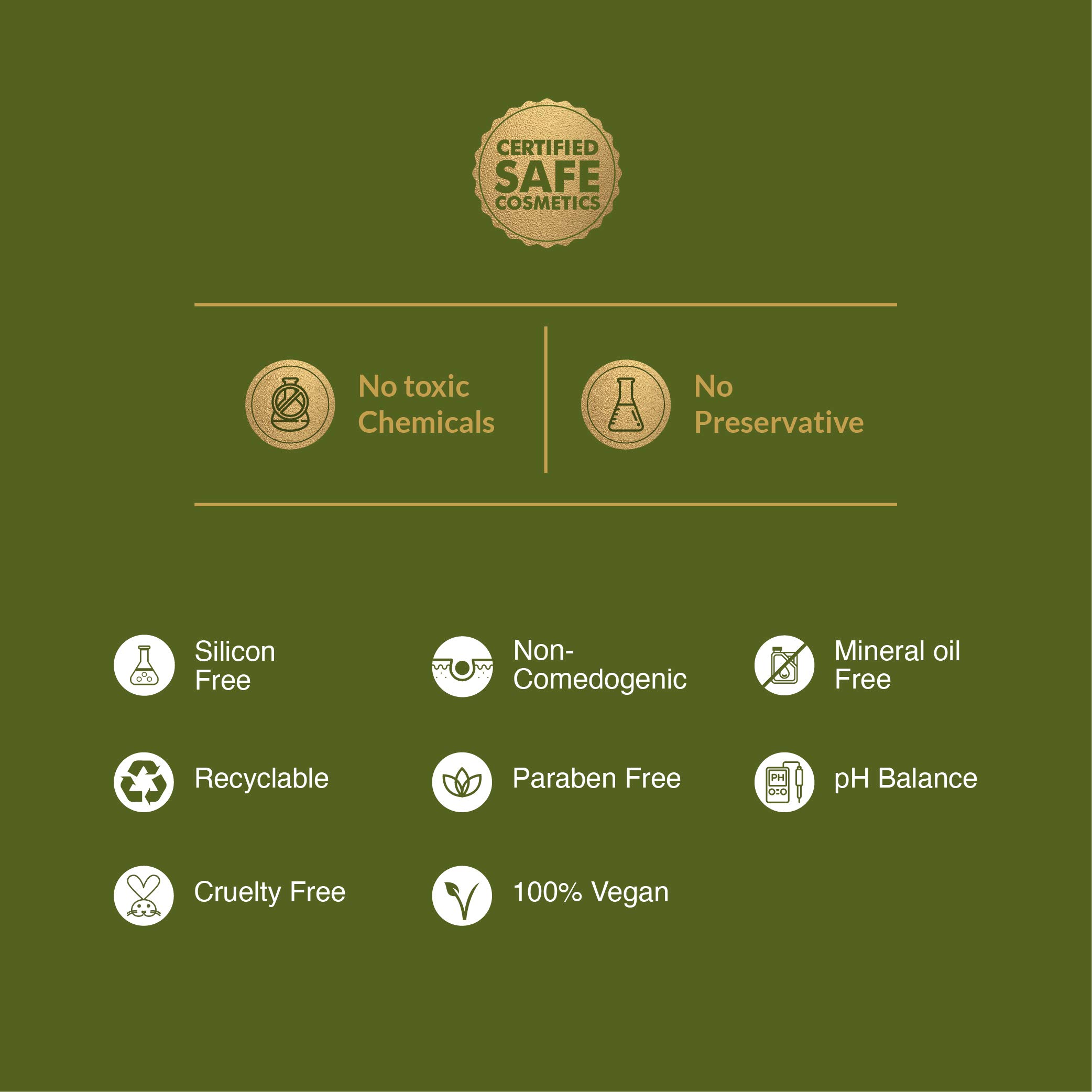 • OUR PROMISE: No toxic chemicals Preservative free Paraben free Silicon free Sulphate free Mineral oil free Anti-pollution pH balanced Cruelty free 100% vegan and Recyclable.