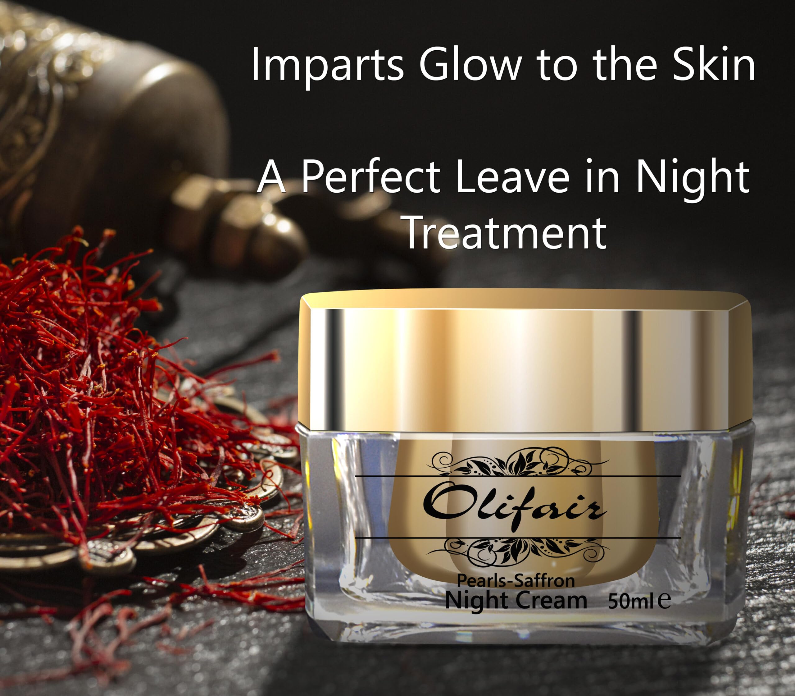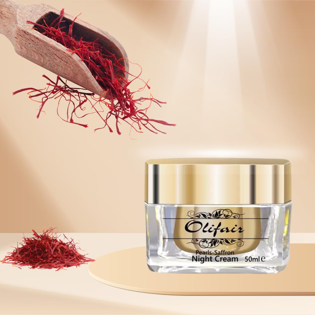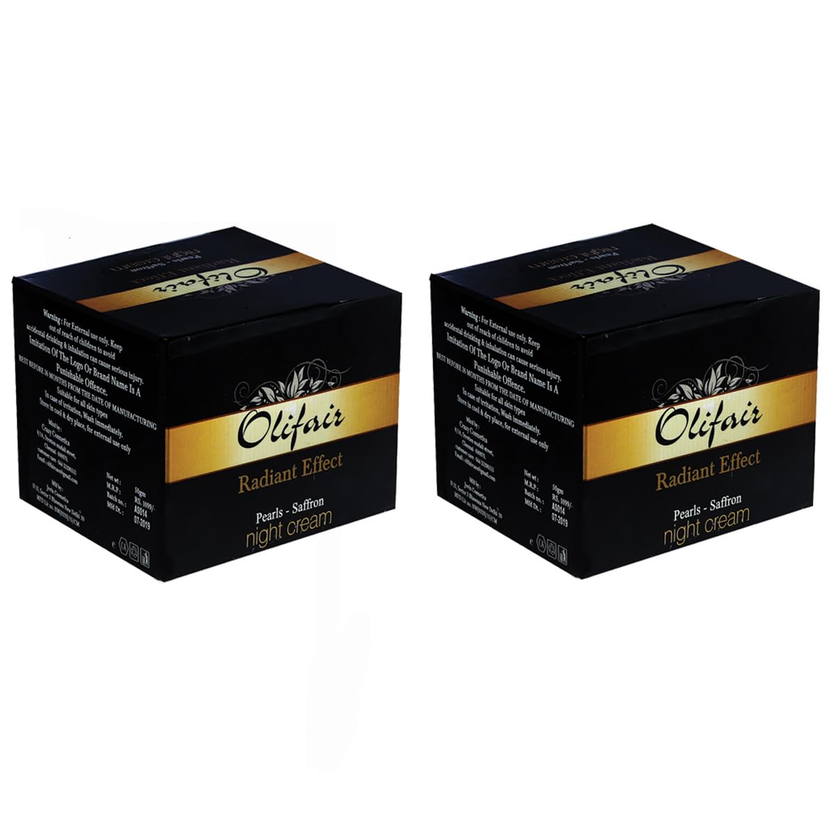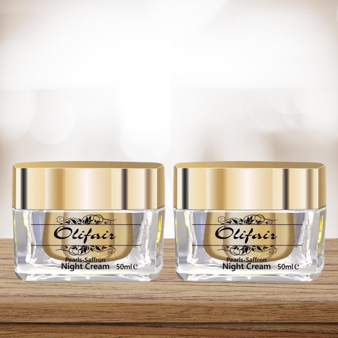 Olifair Pearls Saffron Night Cream for Men and WomenSkin Whitening and Dark Spot Removal-50 g (Pack of 2)