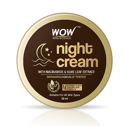 Get smooth toned soft and youthful skin with WOW Skin Science Repair & Restore Night Cream. It is a rich creamy moisturizer that replenishes lost nutrients and hydration to your skin while you sleep through the night.. It penetrates skin swiftly locking in moisture and forming a protective barrier while delivering the goodness of niacinamide olive leaf extract arbutin coconut oil shea butter aloe vera pro-vitamin B5 and vitamin E. These natural ingredients help to deeply moisturize and soothe dry tired and aging skin. Skin feels nourished hydrated and toned. Niacinamide helps boost ceramide levels in the skin and reduce blemishes. It supports in skin renewal thereby repairing any skin damage. Pro-vitamin B5 soothes and moisturizes skin. The night cream keeps your skin smooth and supple through the night. As you sleep the active ingredients in the cream like coconut oil shea butter aloe vera and vitamin E prevent moisture loss by replenishing skinâs moisture barrier. These actives soften rough skin and nourish dry dehydrated skin. Also help to reduce the appearance of fine lines and age spots. Olive leaf extract and arbutin fight skinâs oxidative damage. These actives have skin brightening properties that work to prevent excess melanin and sebum production. These also reduce spots and skin discolouration. The cream delivers deep nourishment to skin and revives youthful suppleness. You wake up with skin looking fresh toned and glowing.