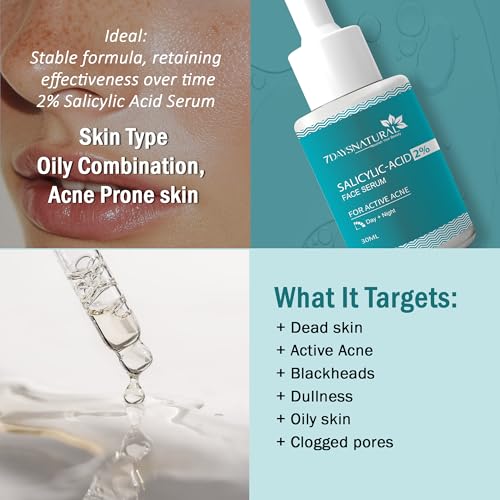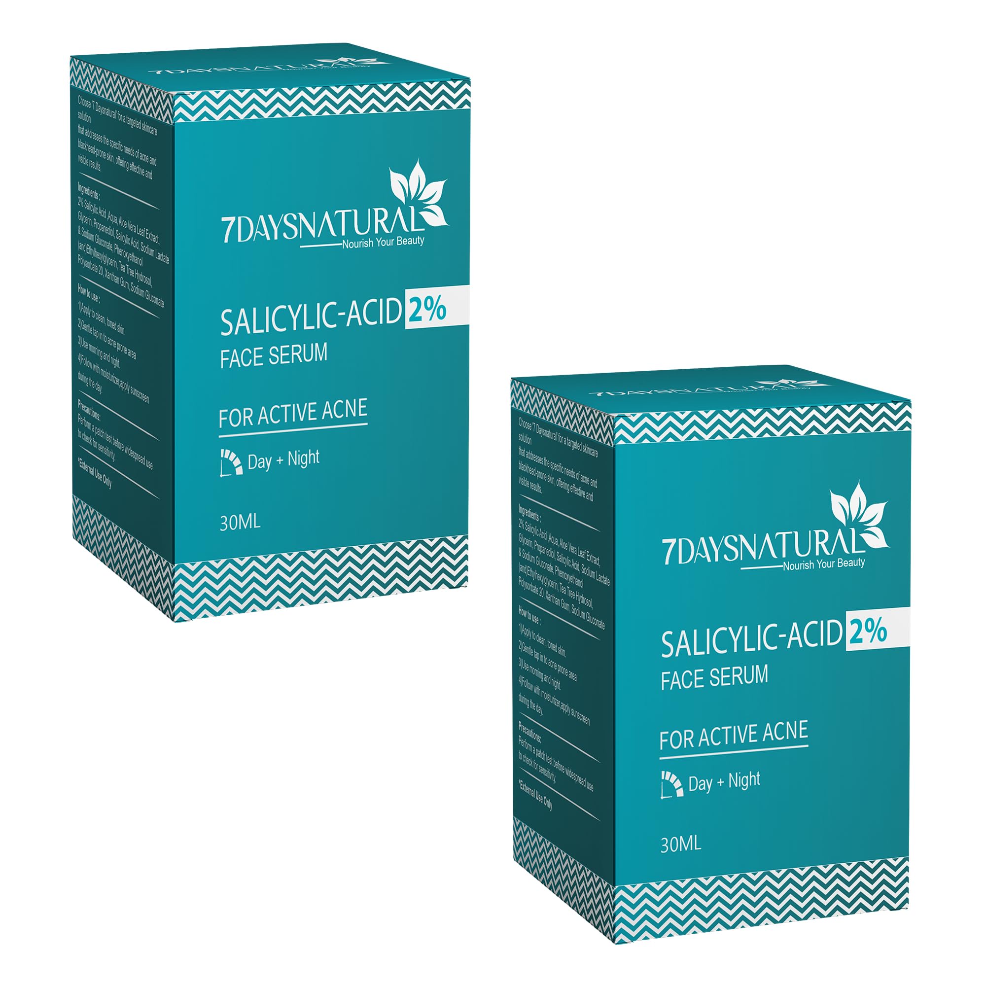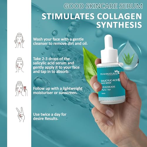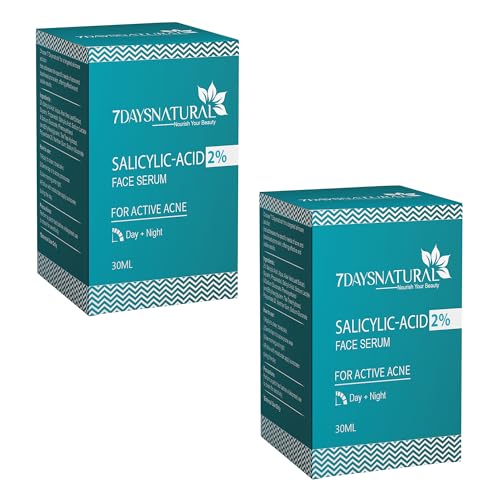 7 Days 2% Salicylic Acid Face Serum | Witch Hazel & Willow Bark | For Active Acne I Controls Sebum Production & Prevents Skin Damage I BHA Based Exfoliant for Acne Prone & Oily Skin- 30ml (Pack of 2)